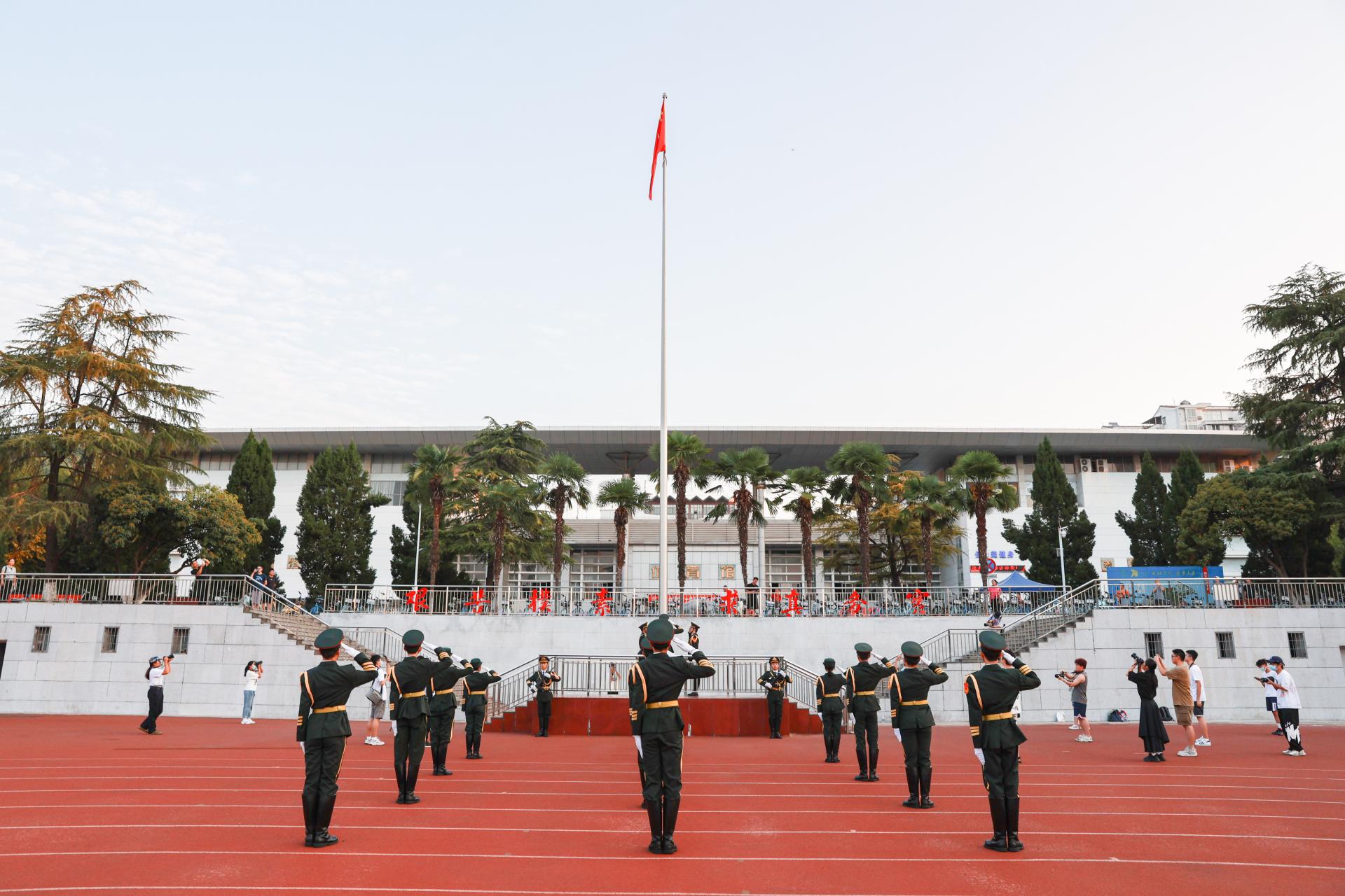 黄晓玫勉励大学生要铭记历史、心怀家国,勇担时代责任和历史使命,用实际行动迎接党的二十大胜利召开和学校70周年校庆。王华主持升旗仪式,嘱托当代青年勿忘国耻、以史为鉴,刻苦学习、努力钻研,为国家为社会作出应有贡献。(审稿 魏海勇)