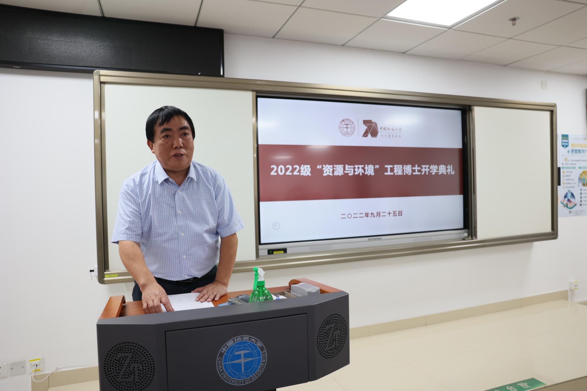 王焰新对资源与环境专业博士研究生来地大求学表示欢迎。他向博士新生提出期望:要坚持不忘初心,立志成为科技创新的造梦者,瞄准“卡脖子”问题,攻坚克难,踔厉奋发,为中国梦的实现贡献力量;要坚持追求真理,努力培养独立思考的能力,秉持求真精神永葆好奇之心,不盲从权威,不迷信教条,敢于质疑,大胆挑战;要坚持厚积薄发,广泛涉猎不同领域,注重数理化基础学科与人工智能前沿学科交叉,积极拓展视野与格局,不断提升人文素养与科研能力。