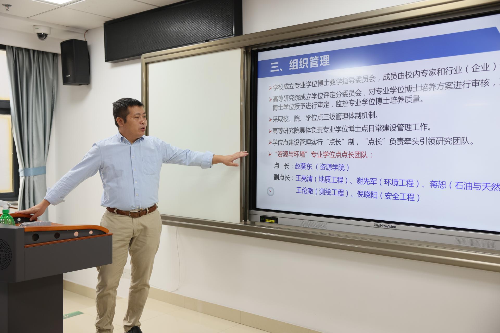资源与环境专业博士点点长、导师代表、环境学院副院长谢先军发言。他介绍了博士点总体建设情况、组织机构、博士生培养方案、学术标准及毕业条件等。他希望,在校企导师组与资源与环境专业博士研究生的共同努力下,攻克我国资源与环境领域工程关键技术难题,为创新型国家建设提供高层次人才。