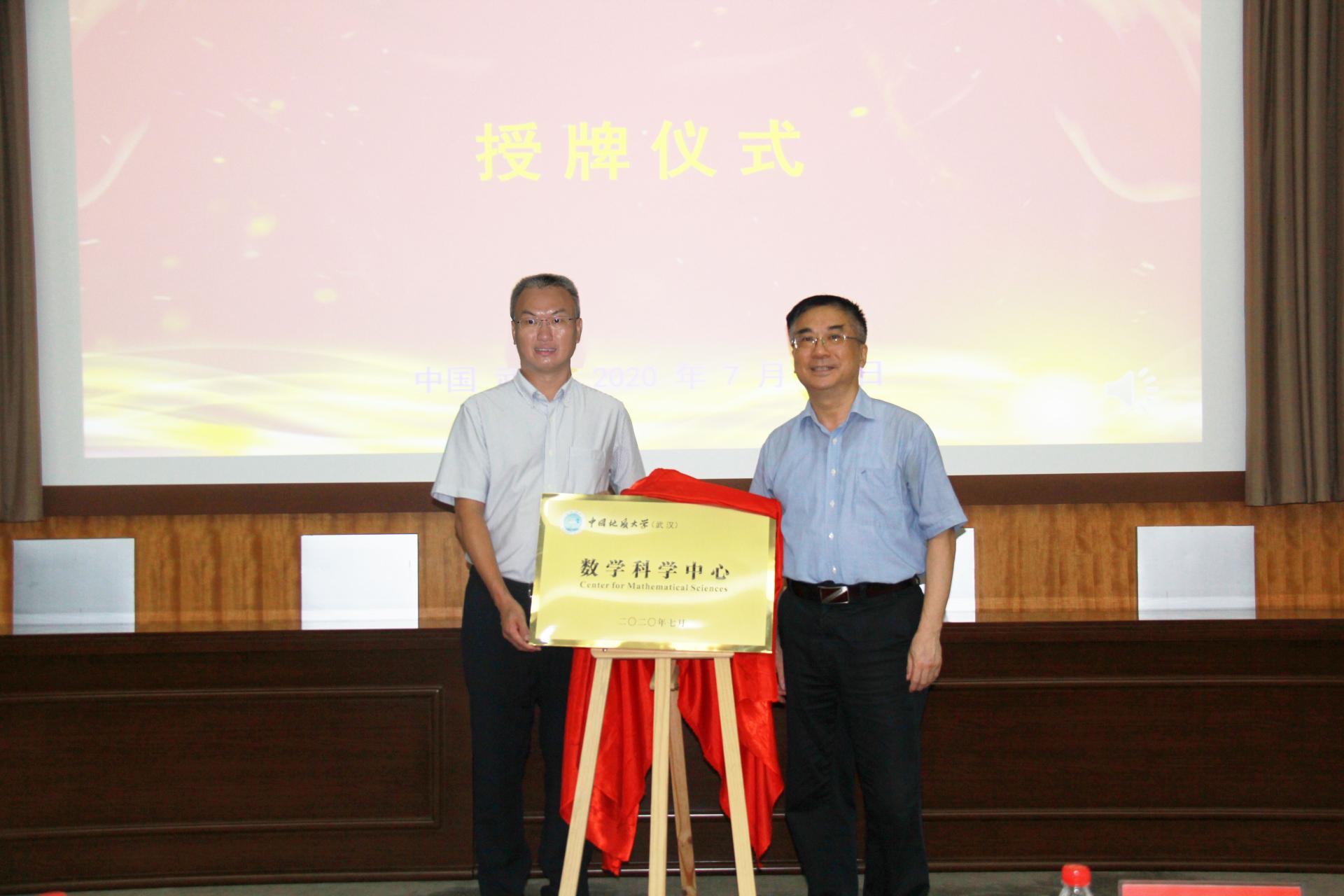 校长王焰新和数理学院院长郭上江共同为数学科学中心揭牌