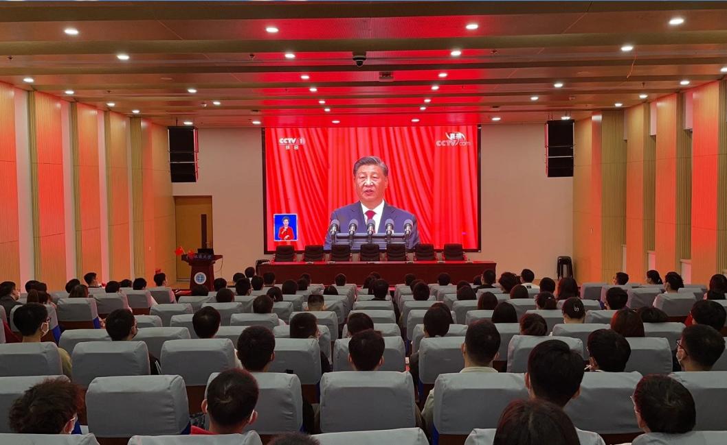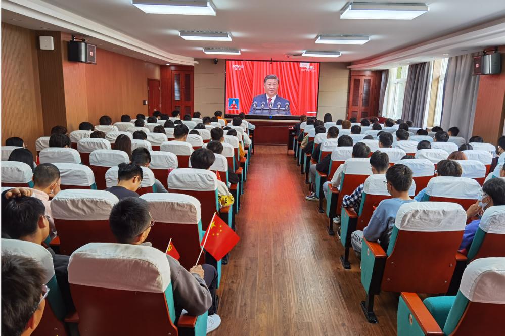 学校在各二级党组织分别设置集中收听收看会场,党政领导班子成员、三级单位负责同志、教师学生代表集中收听收看,为身处伟大时代、见证伟大时刻感到光荣和自豪,进一步坚定听党话、跟党走的奋进合力。