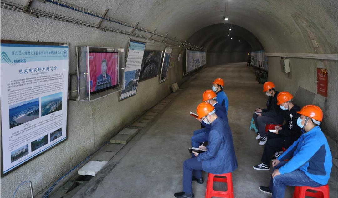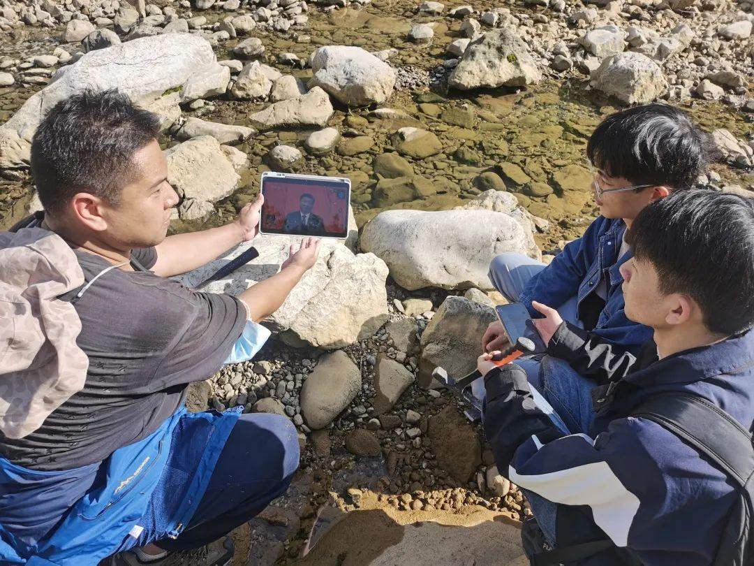 师生在野外、实习基地、实验室、宿舍等地收听收看党的二十大开幕会盛况。