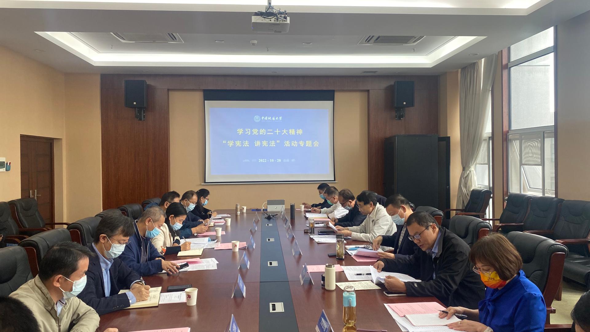 地大新闻网讯(通讯员 宫斯宁) 10月20日,学校召开学习党的二十大精神“学宪法、讲宪法”活动专题会议。党委副书记王林清、相关单位负责人及代表参加会议。综合改革与政策法规办公室主任陶继东主持会议。