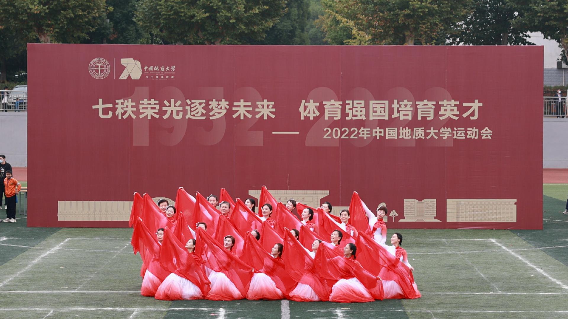 《党旗更鲜艳》向党的二十大献礼,优美的舞姿灵动轻盈,鲜红的绸缎如晚霞般映照在激情四射的地大校园。