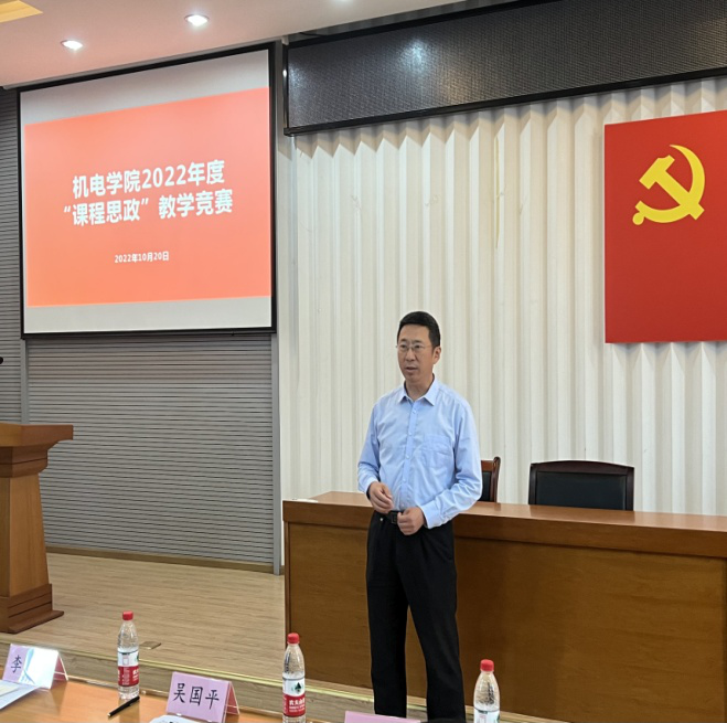为以优异成绩迎接党的二十大和学校建校70周年,10月20日下午,按照年初谋划布置,机电学院党委围绕“为谁培养人、培养什么人、怎样培养人”主题,在教二楼301室举办了学院“课程思政”交流研讨暨教学竞赛。