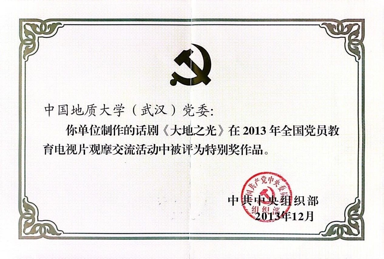 《大地之光》在2013年全国党员教育电视片观摩交流活动中被评为特别奖作品