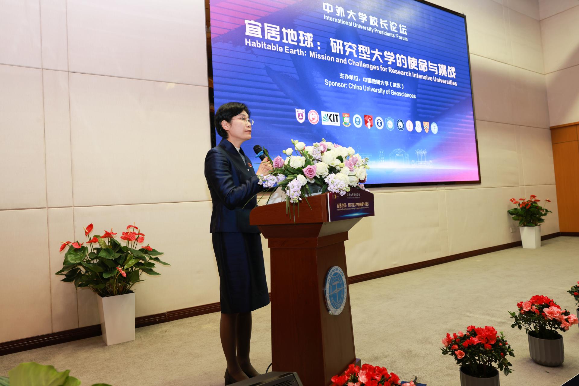 校党委书记黄晓玫教授对参加本次中外大学校长论坛的嘉宾表示欢迎。她说,当今世界正处于大发展大变革时期,人类创造了空前的繁荣与文明,但是能源资源短缺、气候变化、环境污染、重大灾害等一系列全球性问题,是全人类共同面临的风险与挑战。中外大学校长论坛是大学精神和创新思想的交融对话,分享智慧、凝聚共识的互动平台。此次论坛汇集中外相关领域顶尖专家学者,共同探讨研究型大学改革发展等重大课题,对于大学更好地肩负起推动全球可持续发展、共建人类命运共同体的责任与使命具有重要而深远的意义。她表示,中国共产党第二十次全国代表大会擘画了中国式现代化的伟大蓝图,中国将以建设“人与自然和谐共生”为特征的现代化,推动构建人类命运共同体。菲律宾欧博游戏官网(武汉)愿以此次“中外大学校长”论坛为契机,与世界各地的高水平大学互学互鉴、协同创新、共同努力、积极作为,为实现高等教育高质量可持续发展、构建人类命运共同体作出新的更大的贡献。