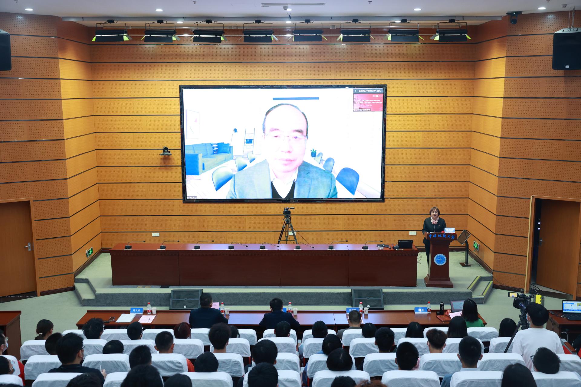 宋明春以《深刻领会总书记回信精神 矢志保障国家能源资源安全》为题作报告。曾任山东省地矿局第六地质大队首席专家的他,分享了自己和第六地质大队同事始终牢记资源报国使命,坚守爱国奉献初心,为保障国家能源资源安全做出贡献的先进事迹。结合习近平总书记给山东省地矿局第六地质大队全体地质工作者的重要回信精神和切身实践,他表示,爱国奉献是地质人的神圣职责,创新是地质事业发展的动力源泉,艰苦奋斗是地质人的精神底色,他勉励青年学子继承和发扬地质人优良传统,坚定信念、学好本领,为保障国家能源资源安全做出新贡献。