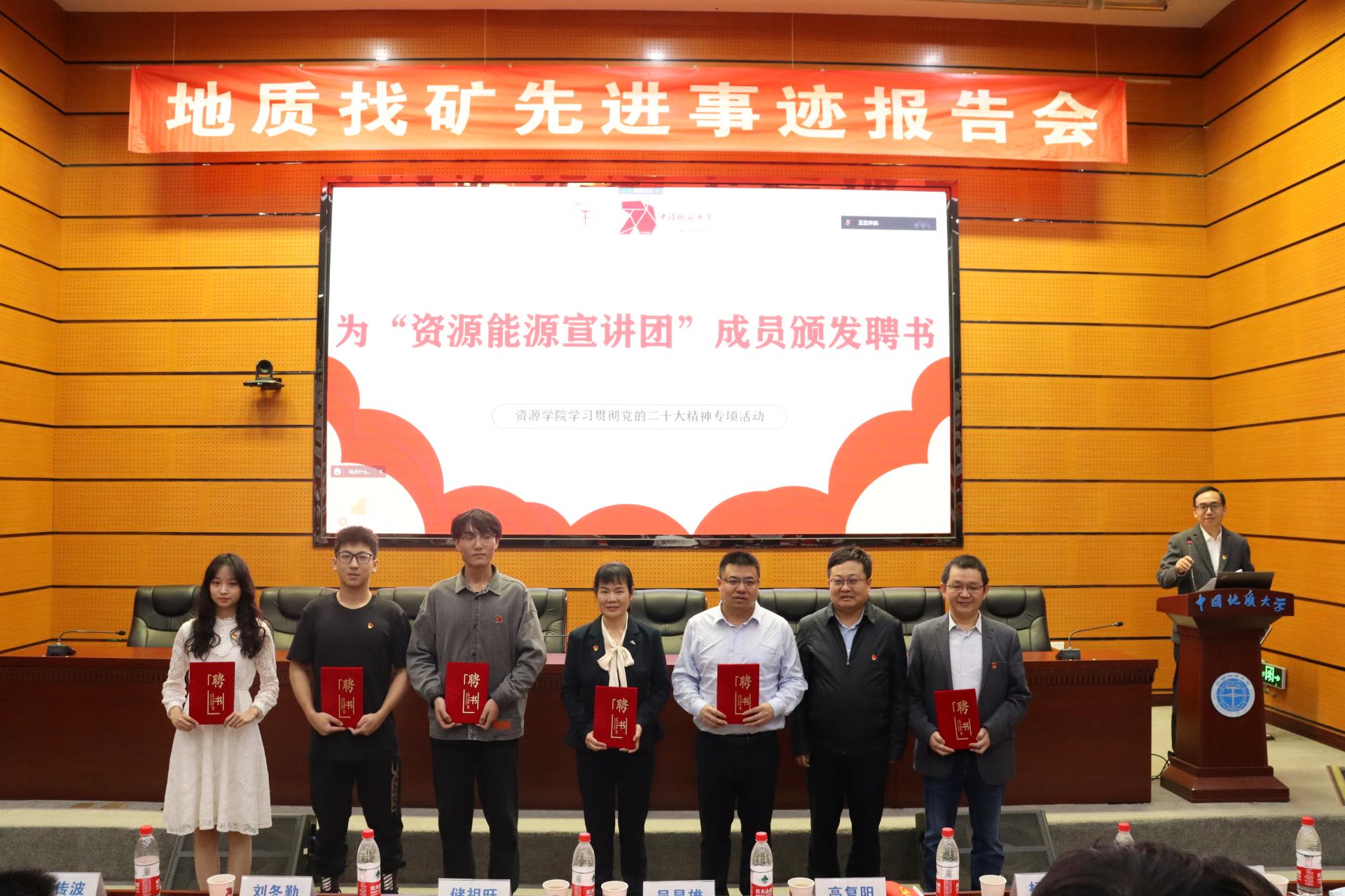资源学院党委书记高复阳为“资源能源宣讲团”师生代表颁发聘书