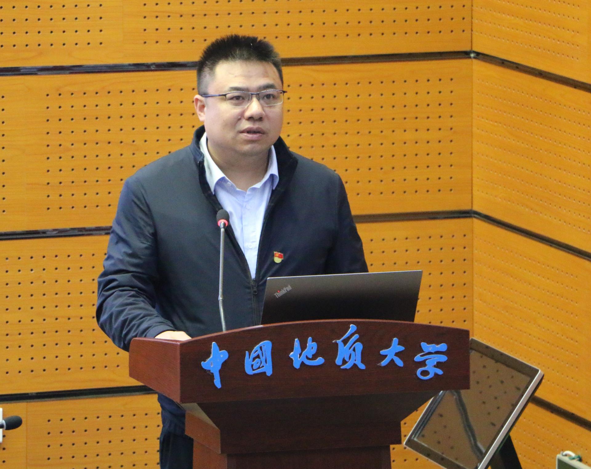 储祖旺总结讲话。他向一队和长期扎根生产一线的地质工作者表示敬意。他表示,资源学院举办地质找矿先进事迹报告会、组建资源能源宣讲团,是面向社会、面向学校讲好地大故事的重要举措,要认真集中备课、广泛宣讲宣传,争做学校“美丽中国讲师团”中的生力军。他希望,资源学院和湖北省地质局第一地质大队持续深化合作,依托党建联建共创,积极打造校企合作、产教合作新范式,共同为新一轮找矿战略突破行动、为服务国家能源资源事业做出新贡献。