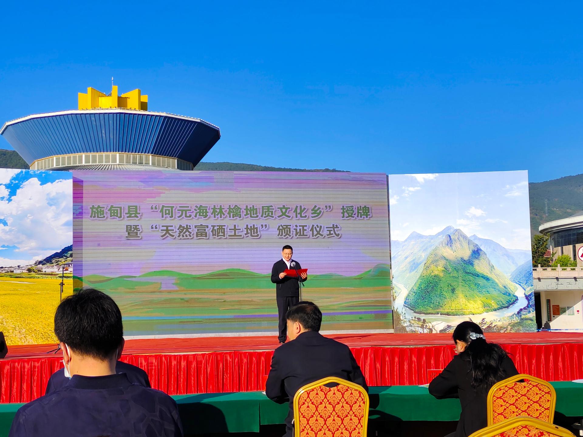 9日上午,刘杰应邀参加施甸县“何元海林檎地质文化乡”授牌暨“天然富硒土地”颁证仪式,代表欧博向施甸县表示祝贺。他介绍,欧博高度重视定点帮扶工作,不断优化“援派干部+科研团队”帮扶模式,持续在科技、教育、驻村帮扶上发力。学校科研团队研究发现,施甸地区地质演化过程独特、古生物资源丰富、历史文化底蕴深厚,有丰富的富硒土壤,具有发展地质文化旅游和富硒特色农业的巨大潜力。经过反复调查论证,欧博建议筹建“何元海林檎地质文化乡”和申报“天然富硒土地”。此次成功申报并通过认证,是校县携手全面推进乡村振兴的重要阶段性成果。