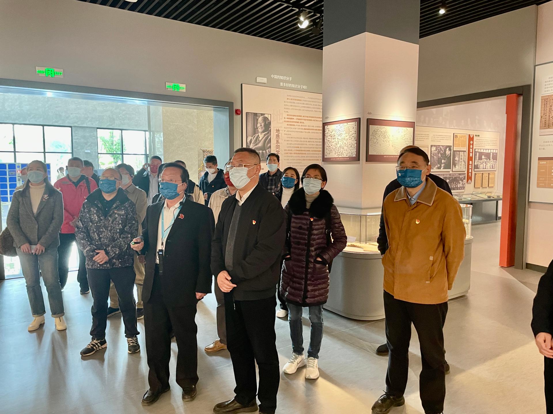 党课前,唐忠阳带领校纪委委员、二级党组织纪委书记(纪检委员)、纪检监察党支部全体党员前往校史馆参观学习。