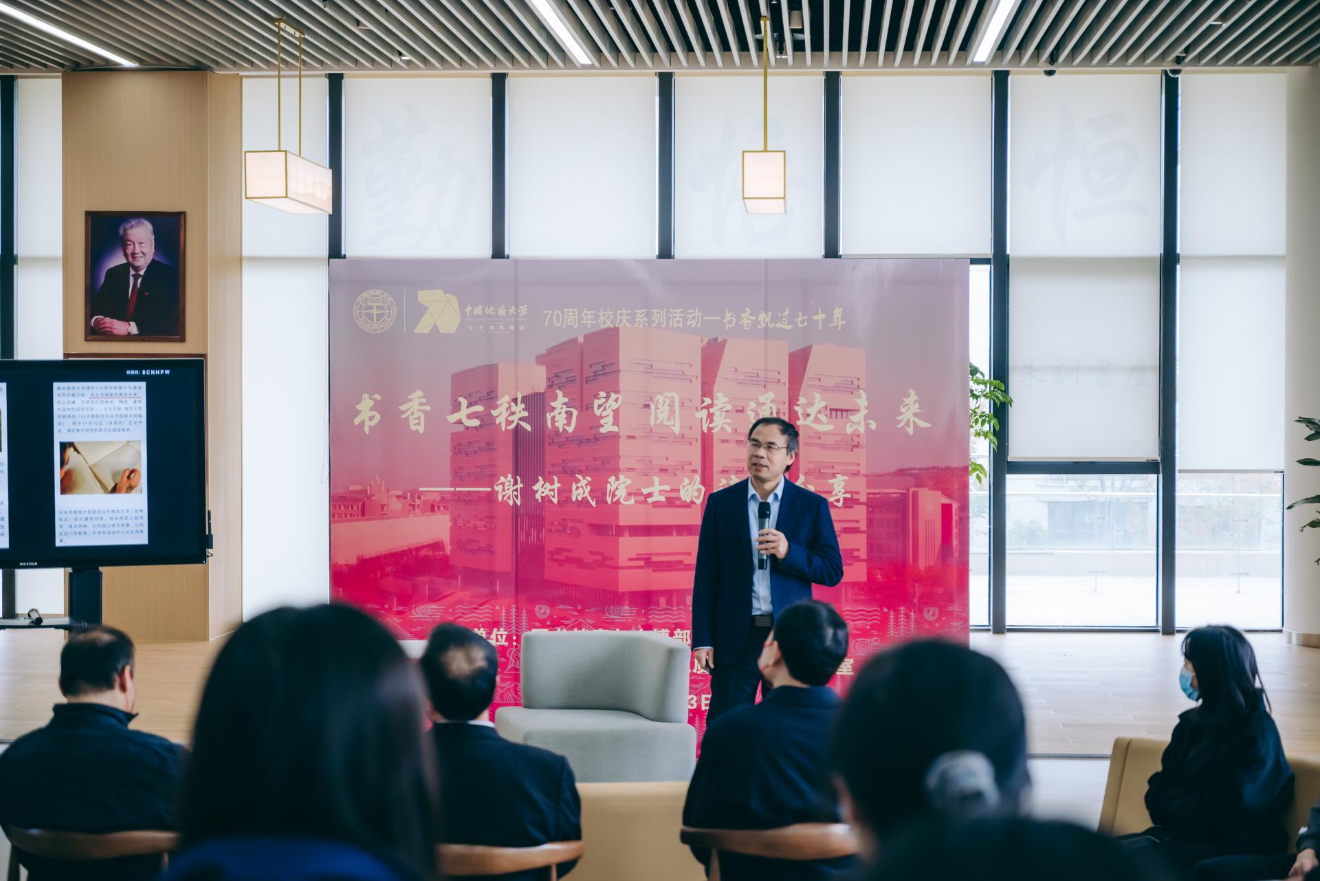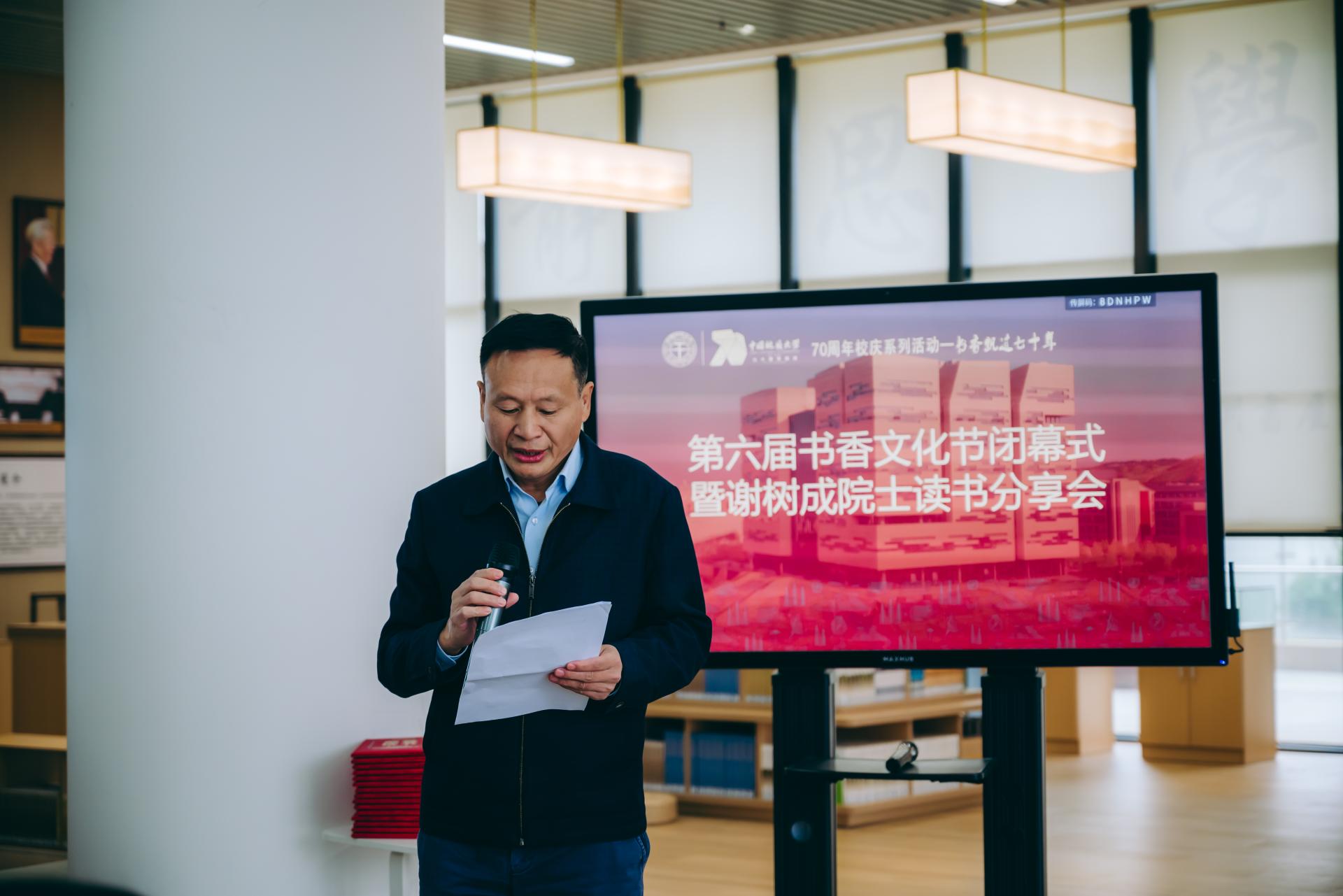 地大新闻网讯(通讯员 徐燕 刘安璐 梁胜男 摄影 普坤 程晓龙 眭艺钟)11月23日,第六届书香文化节闭幕式暨谢树成院士读书分享会在未来图书馆举行。中国科学院院士谢树成,副校长赖旭龙,图书档案与文博部负责人以及师生代表参加此次活动。