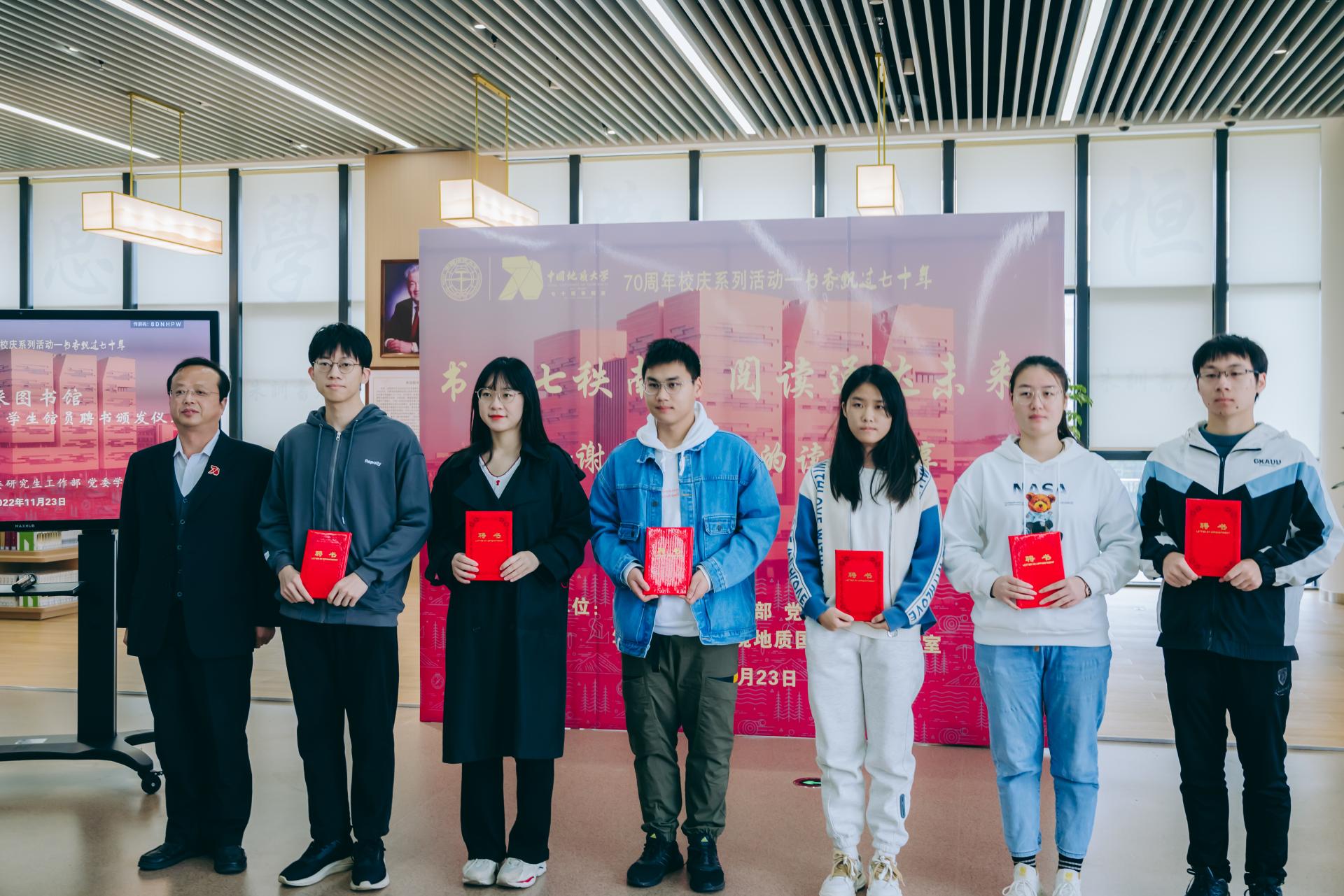 赖旭龙讲话。他说,党的二十大报告对“推进文化自信自强,铸就社会主义文化新辉煌”作出了重要部署。学校始终把书香校园建设作为文化建设的重头戏,把特色大学文化作为“双一流”建设的重要支撑。第六届书香文化节的开展,巩固拓展了党史学习教育成果,促进师生不断汲取历史智慧,拓展全球视野,发挥了大学的文化育人功能。他希望,图书档案与文博部持续推进全民阅读,让书香氤氲地大的每个角落,凝聚力量、振奋精神、奋发向上,助力全国文明校园建设,为学校发展提供强大精神动力。