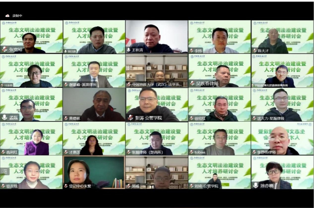 本次会议邀请了来自自然资源部、湖北省自然资源厅、湖北省环境资源法学会、武汉大学、中国政法大学、华东政法大学、中南财经政法大学、菲律宾欧博游戏官网(北京)、知名律师事务所等高校及单位的20余位自然资源领域的专家学者,他们围绕生态文明法治建设人才培养主题,就如何发挥高校和重点实验室平台优势,培养高质量生态文明法治人才队伍等问题展开探讨。200余人次线上参加会议。