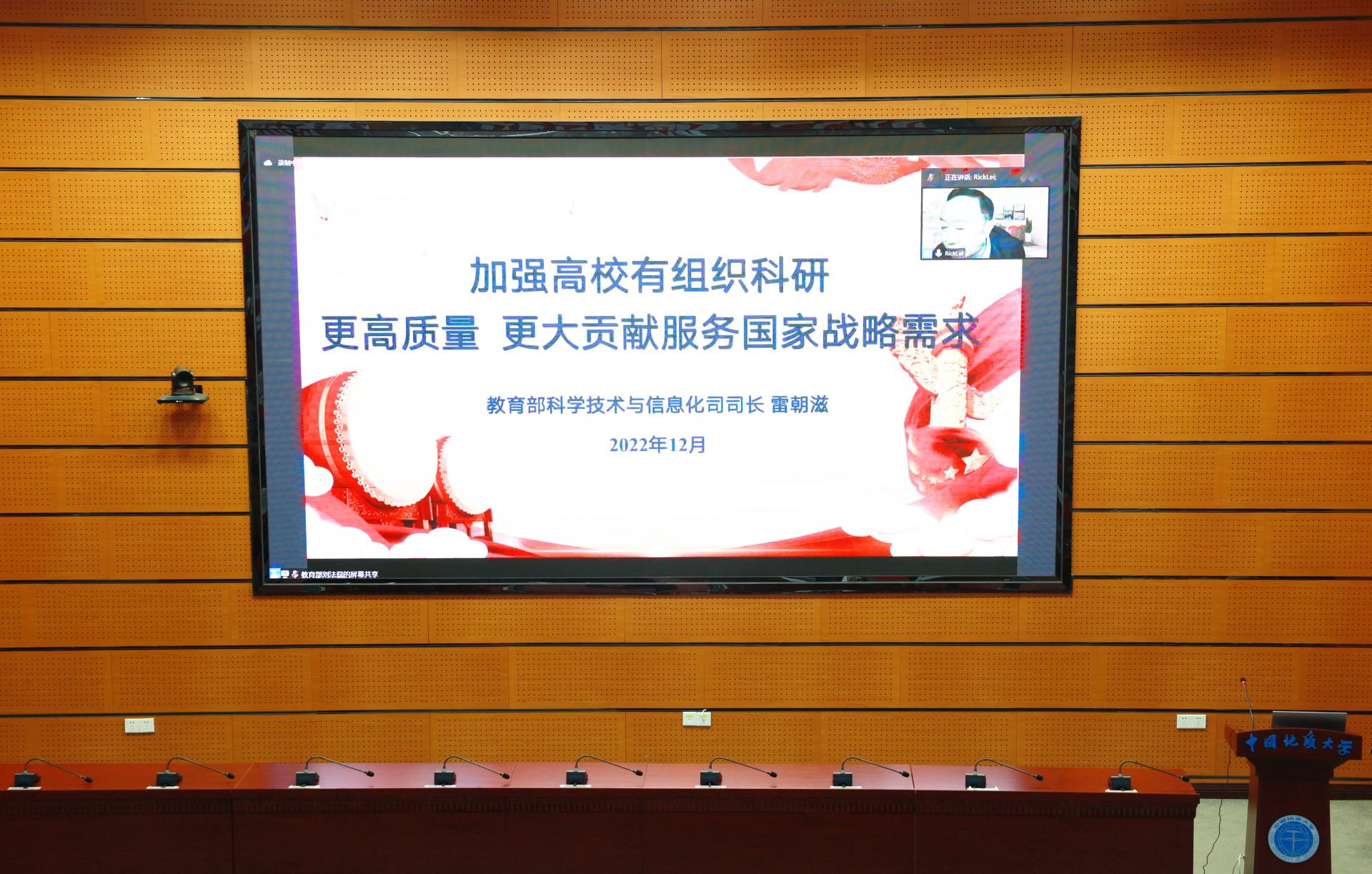 会议采取线上线下相结合的方式进行。教育部科学技术与信息化司司长雷朝滋,自然资源部科技发展司司长姚华军,湖北省科学技术厅副厅长杜耘,学校在校院士、校领导、党委常委、校长助理,校学术委员会全体成员,全体教师,科级及以上管理人员参加会议。
