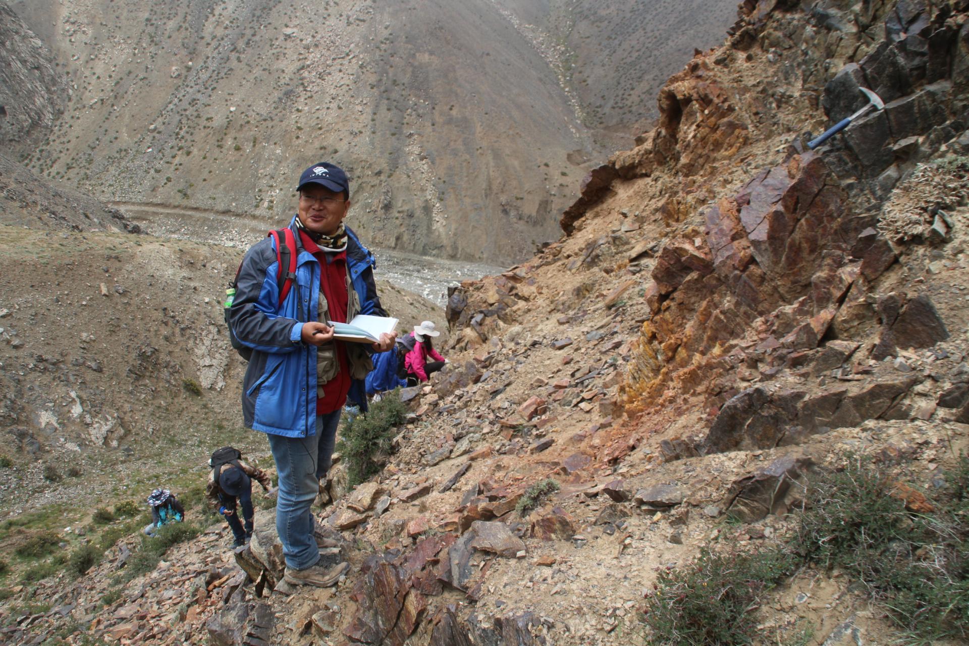 蒋少涌与团队成员在青海锡铁山矿床考察