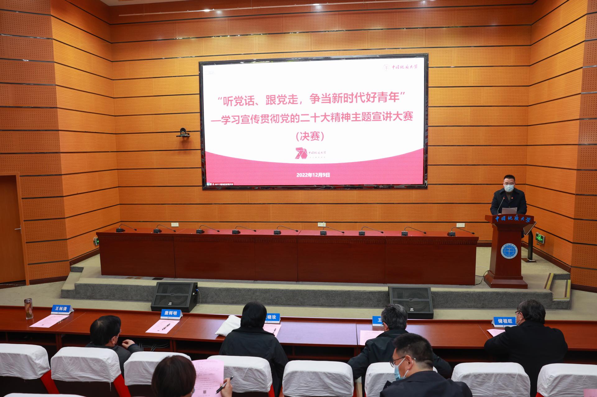 经过初赛和复赛两个环节,10位参赛选手进入决赛环节。来自公共管理学院的陈雨蛟、经济管理学院的魏振坤、资源学院的陈宇琪、计算机学院的谢芸、地球科学学院的孙永芳进行主题宣讲。孙永芳以《守护绿水青山,建设美丽中国》为主题,以武汉市生态环境修复成果为切入点,生动讲述了党的十八大以来我国生态环境发生的历史性、转折性、全局性变化,号召地大学子投身建设新时代的美丽中国伟大事业,斩获学生组第一名。