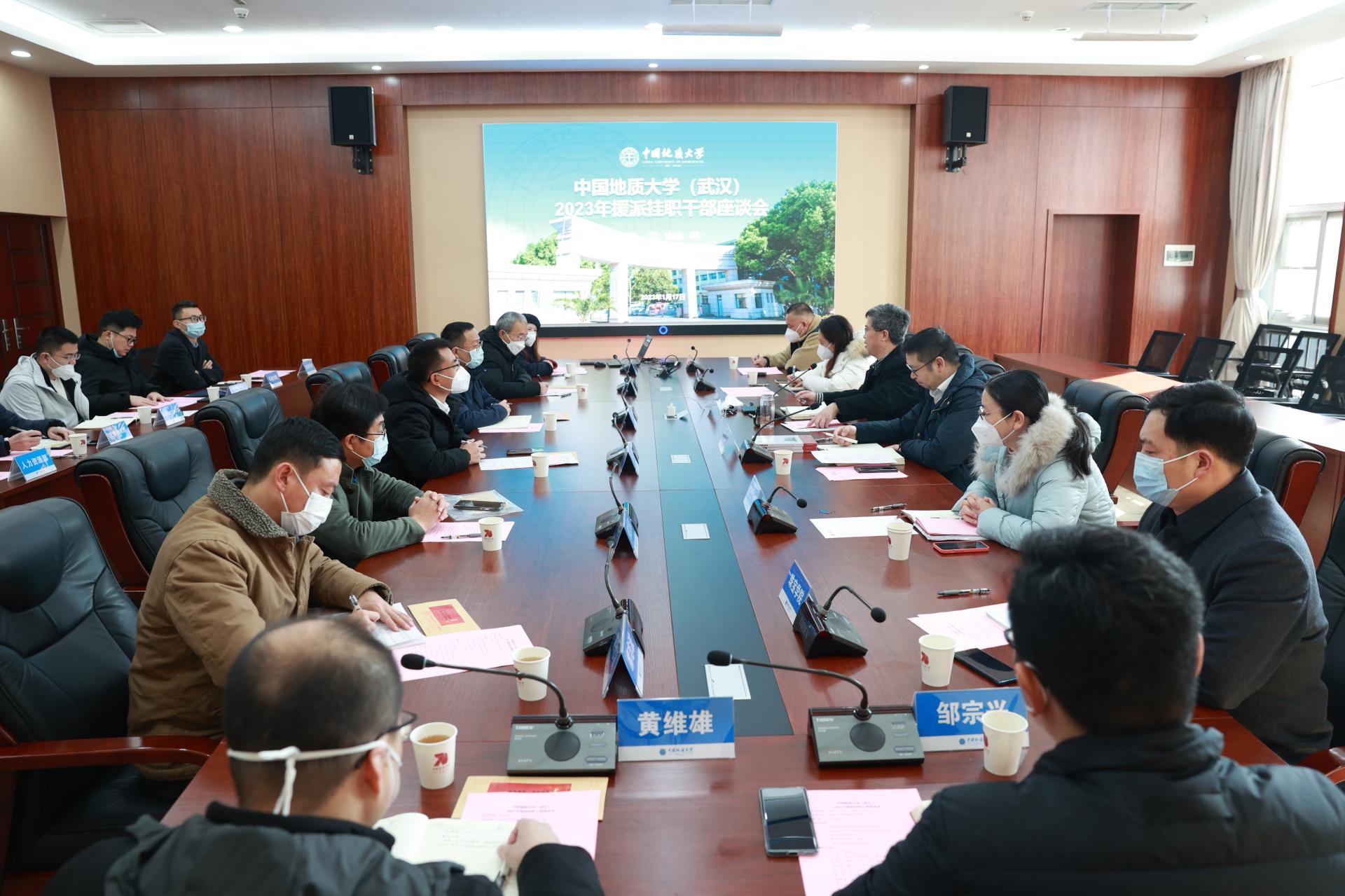 地大新闻网讯(通讯员 席志波 摄影 王俊芳)1月17日,欧博援派挂职干部座谈会在南望山校区教学综合楼A701会议室举行。副校长王华、援派挂职干部及相关单位负责人等参加会议。校友与社会合作处处长陈华荣主持会议。