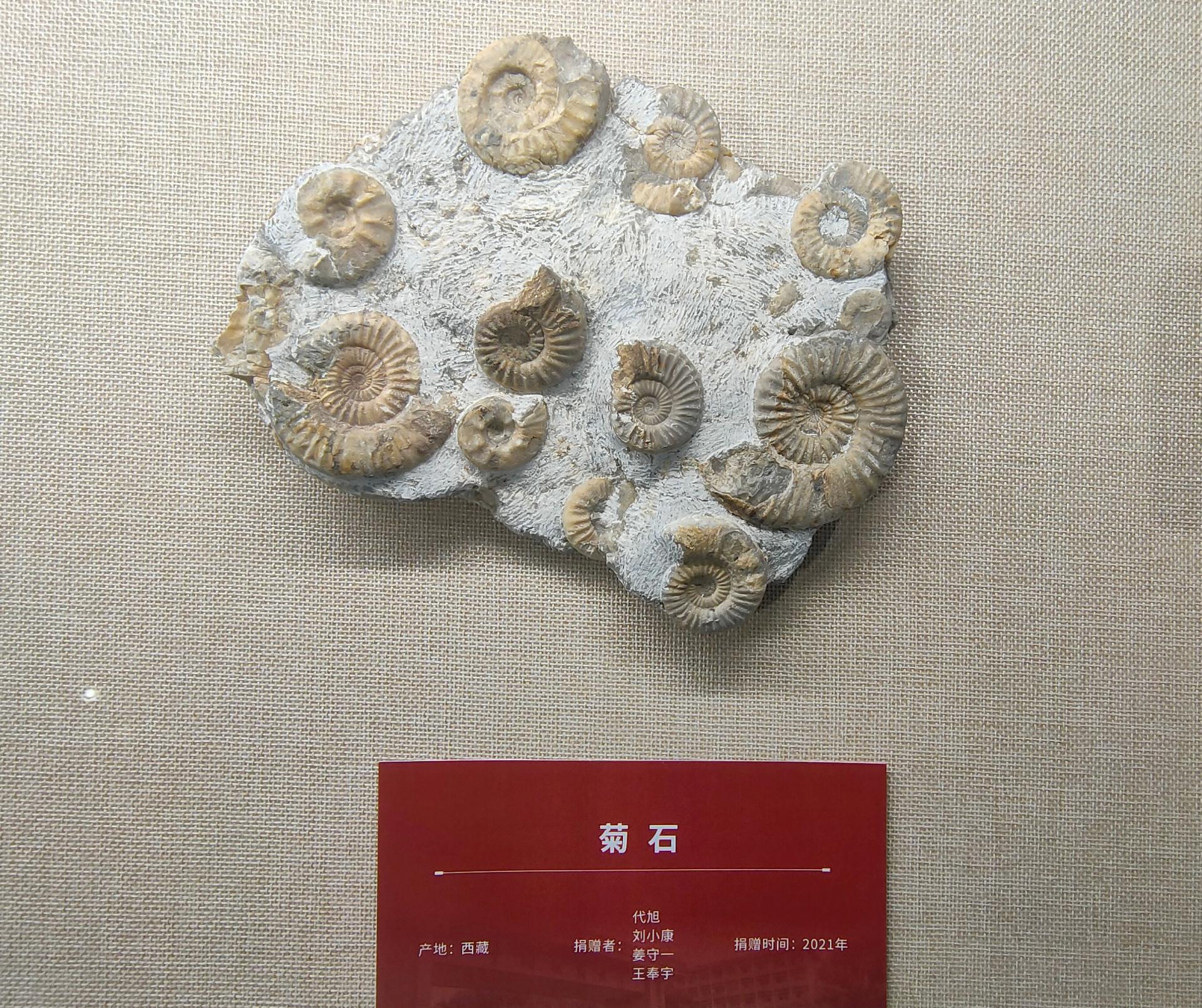 代旭等人捐赠的菊石化石标本在逸夫博物馆“校友捐赠藏品展厅”展出 李富强摄