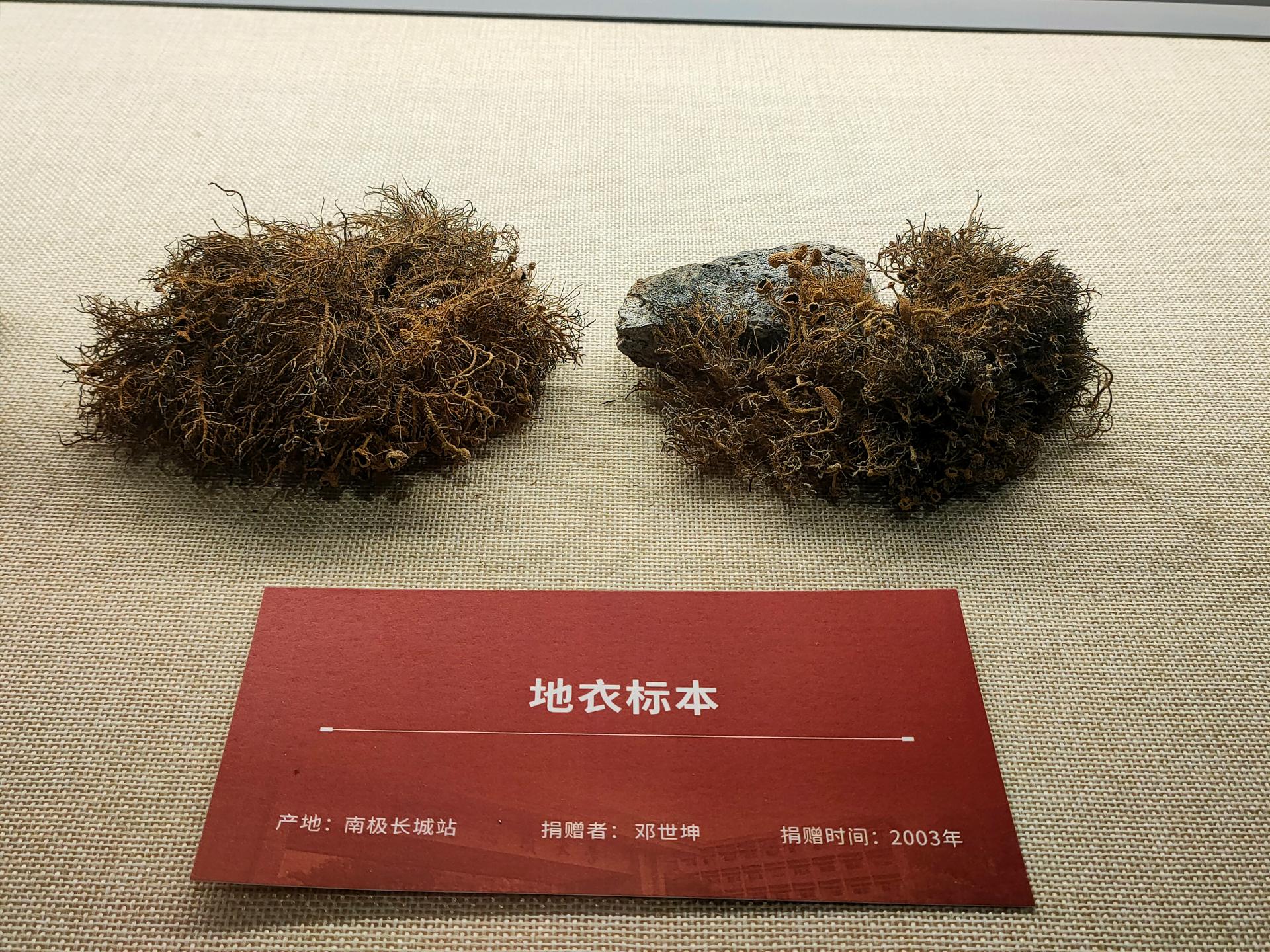 逸夫博物馆保存的这个地衣标本,长10厘米、宽7厘米,由地球物理与空间信息学院邓世坤教授2002年底在南极埃默里冰架采集,并于2003年捐赠给学校。