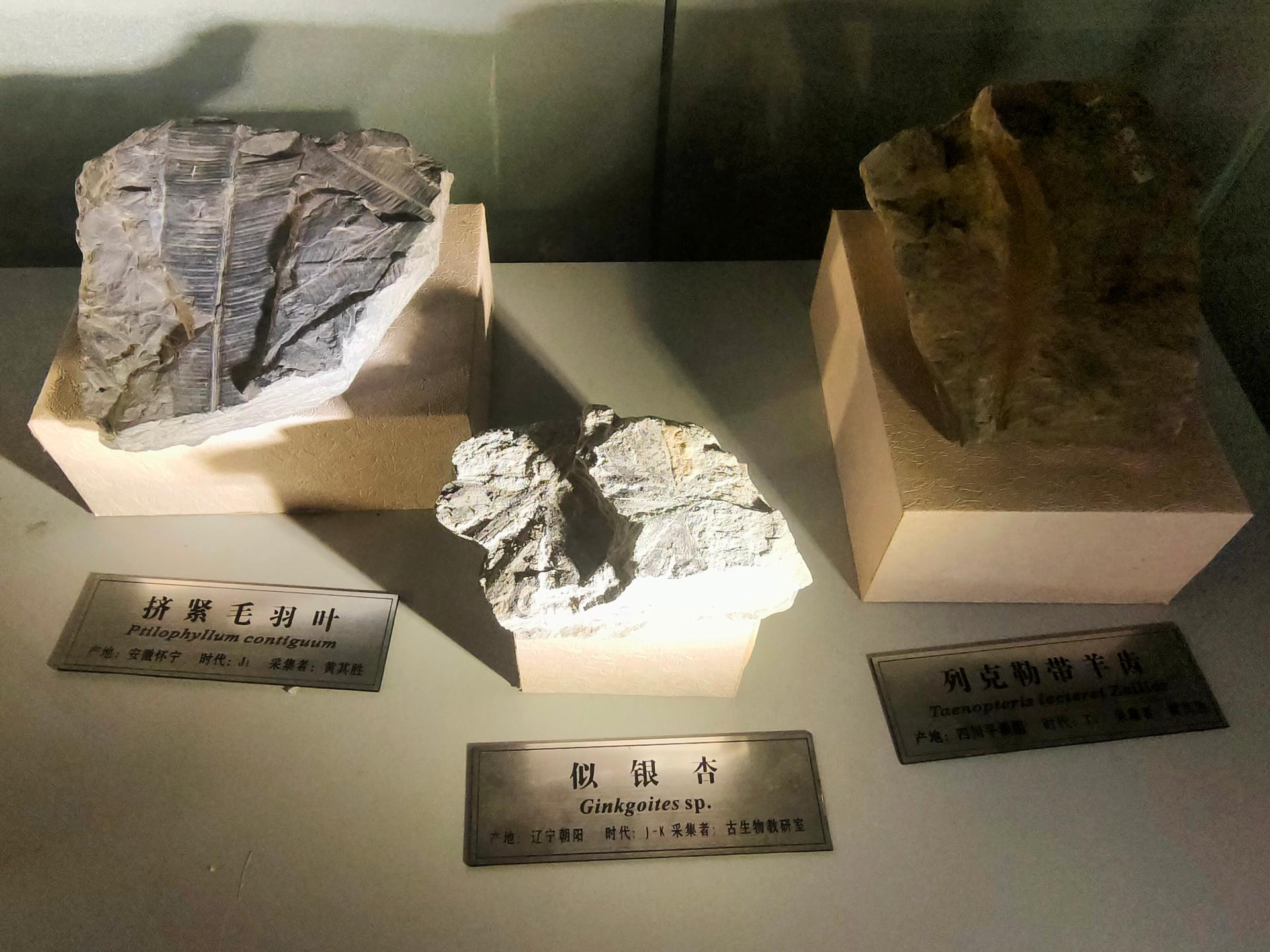 在侏罗纪时代,分布着大量的似银杏。在逸夫博物馆四楼就保存着一块由古生物教研室捐赠的似银杏化石,它与银杏属植物的外形看起来非常相似,但在角质层特征或其它解剖学特征上却有着重大差别。