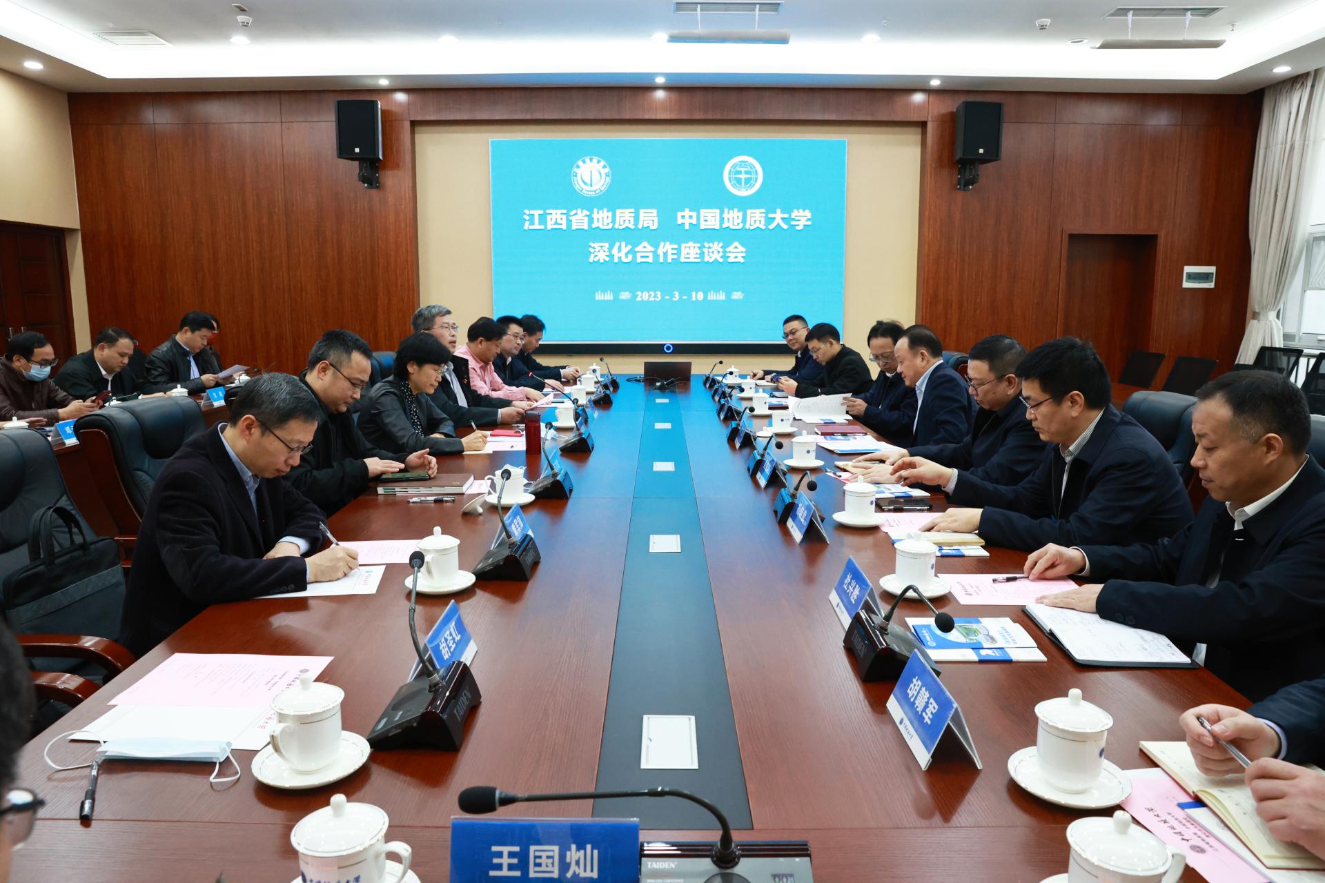 宋斌感谢地大对江西地质事业发展提供的支持和帮助,充分肯定了地大在地质人才培养方面做出的贡献。他说,地质工作离不开人才的培养和技术的支撑,要推动创新人才培养和产学研紧密结合,牢牢把握中国式现代化赋予地质工作的新使命。他希望借助学校的人才优势和各种资源,在地质勘探能力建设、产学研创新平台搭建、人才引进、科研创新、职工学历提升等方面加强合作。