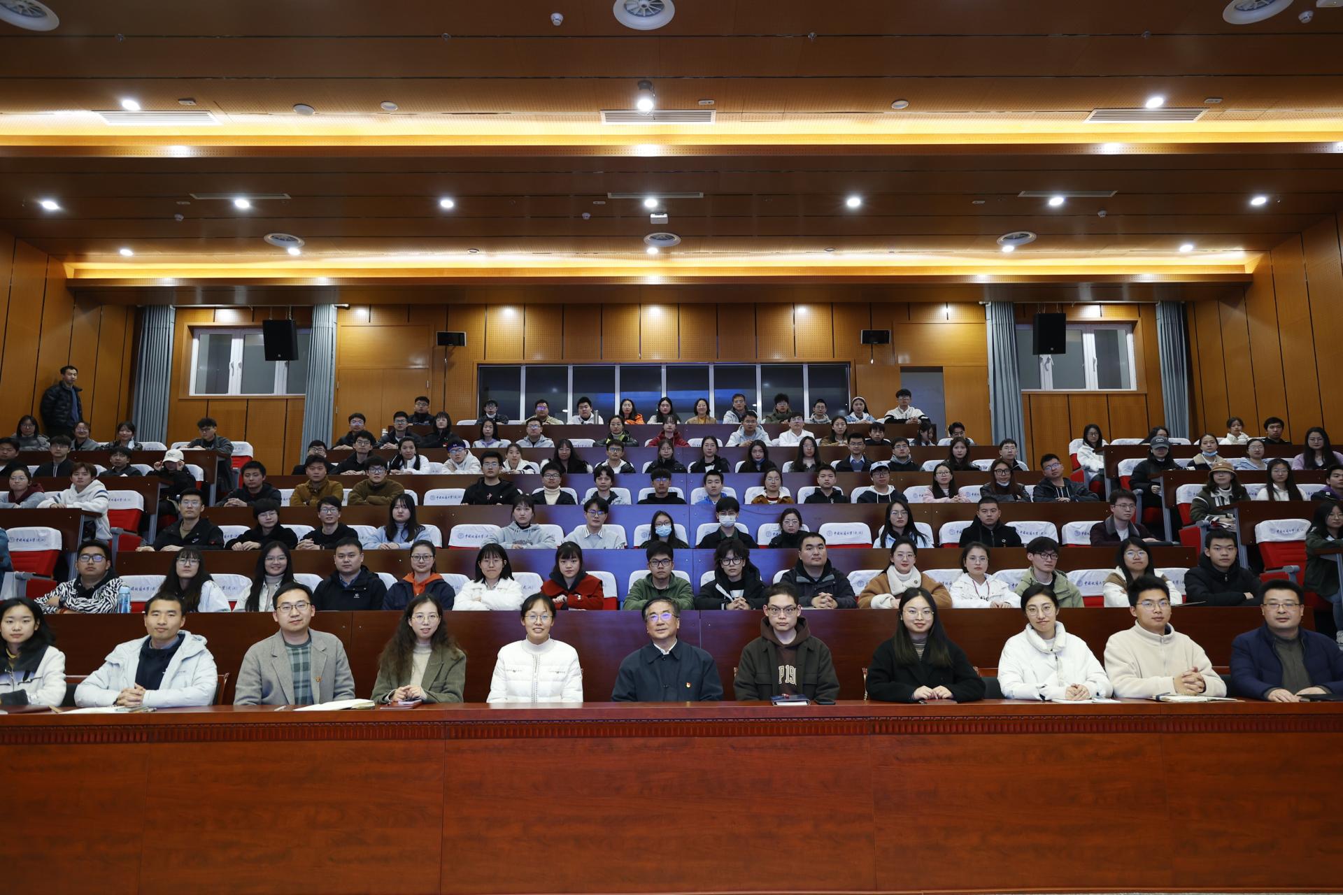 “开学第一课”结束后,王焰新与师生代表合影留念。(编辑 赵婧萱 审稿 魏海勇)