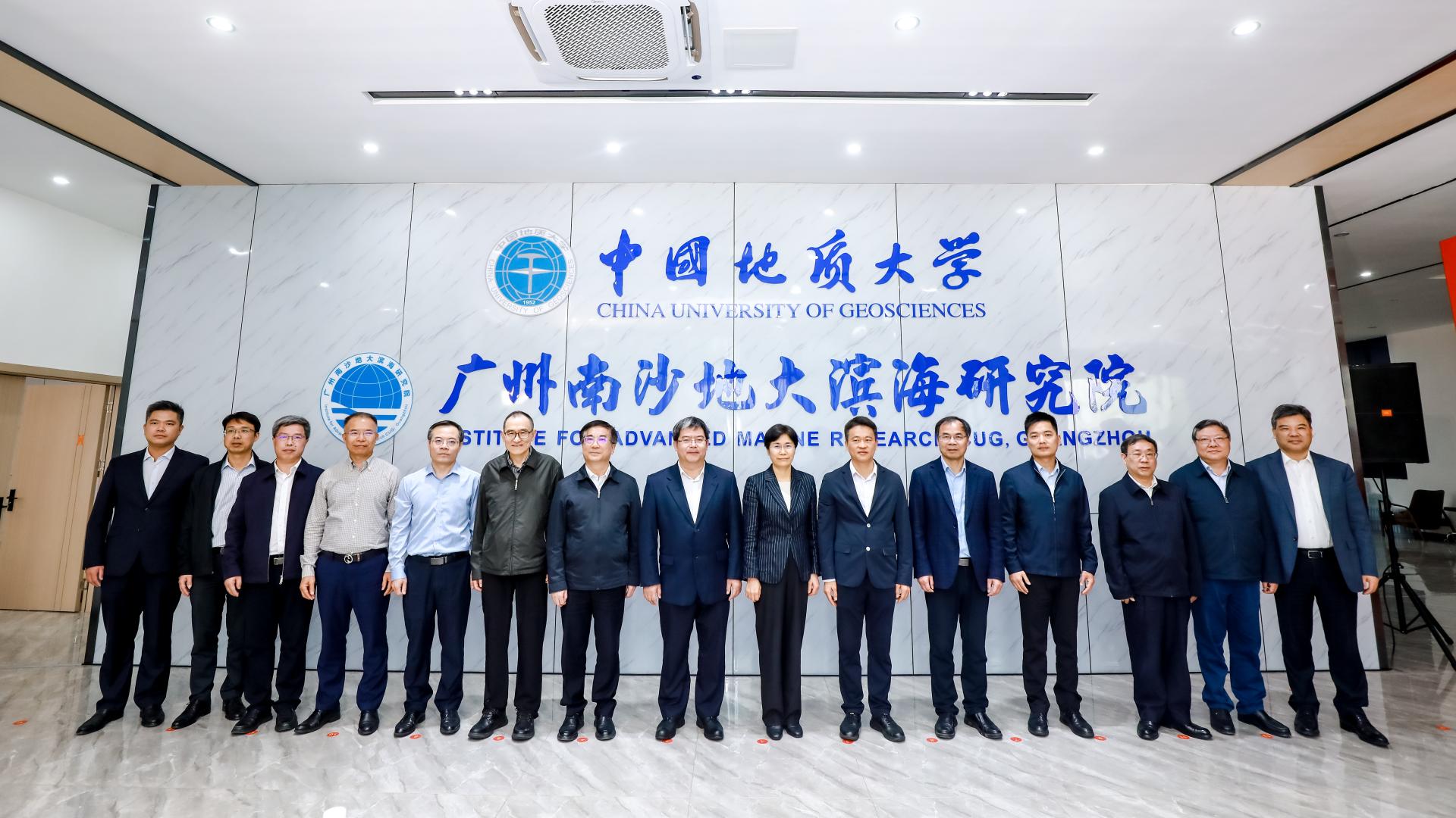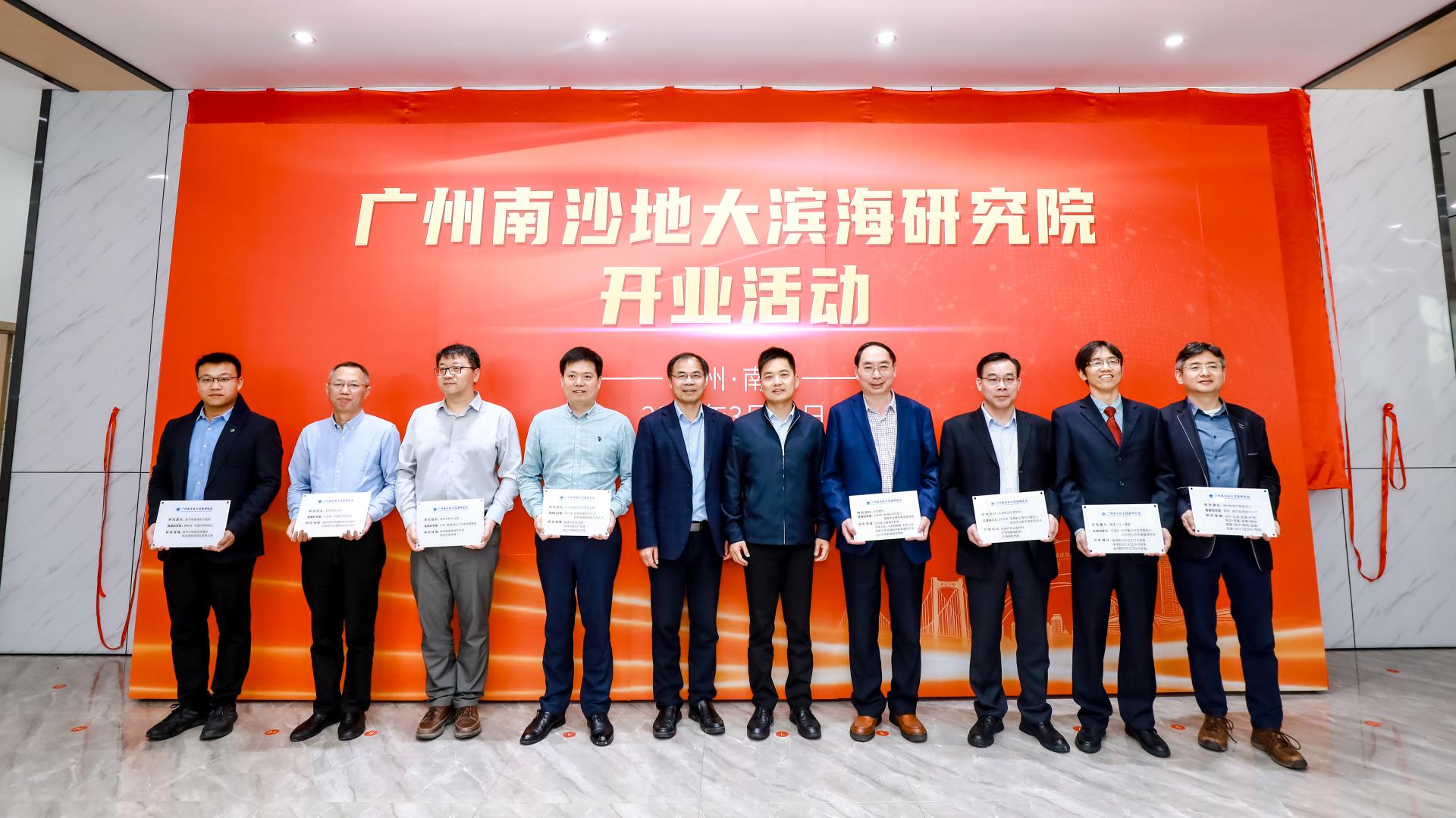李德球、谢伟、陈国庆、黄晓玫、王焰新、储祖旺、谢树成、彭平安共同为广州南沙地大滨海研究院揭牌。