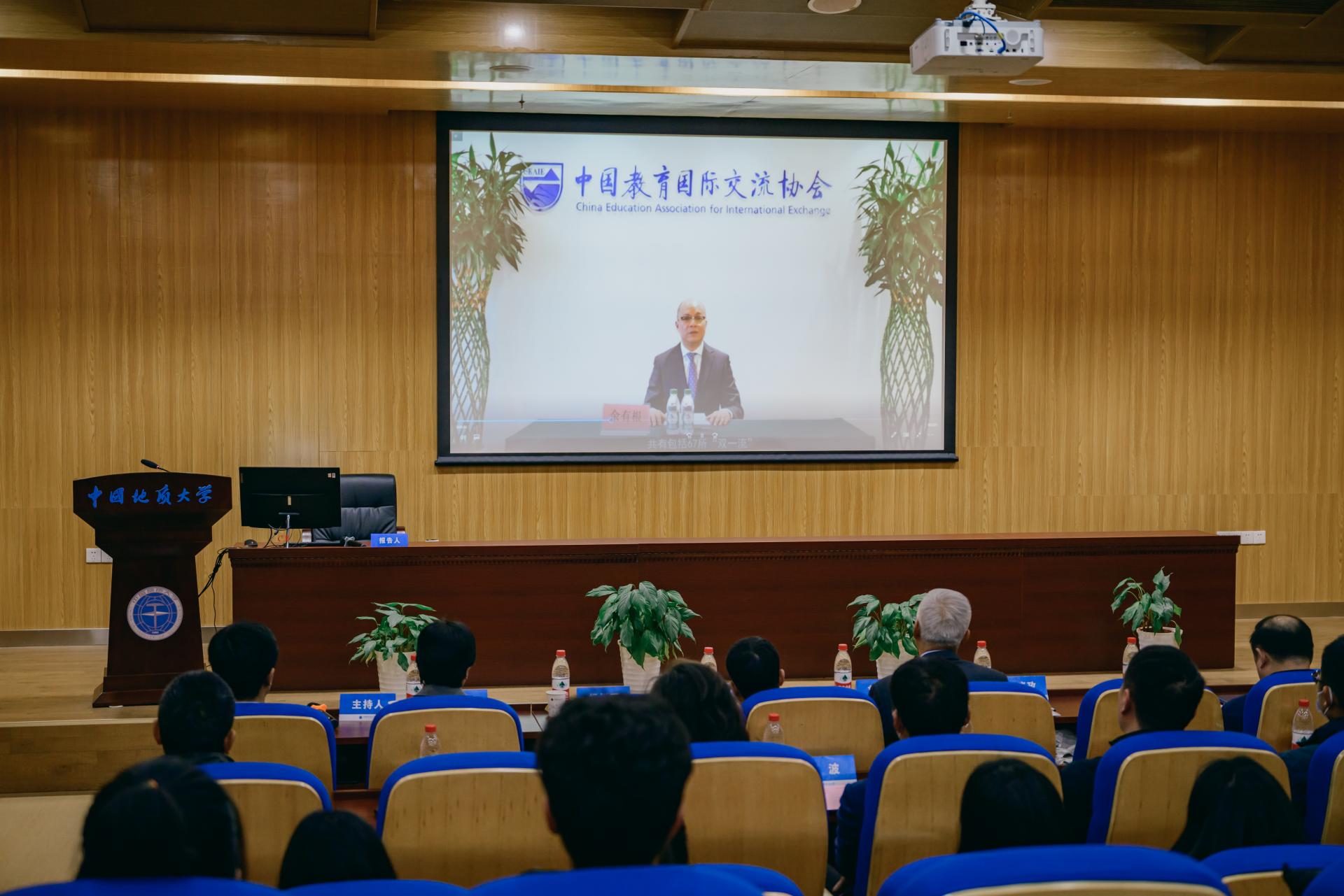 中国教育国际交流协会副秘书长余有根线上致辞。他表示,新青年全球胜任力人才培养项目力求通过与高校合作开展的“第二课堂”活动,探索加快具有国际竞争力的高层次国际化人才培养的新模式。他鼓励地大学子努力学习,成为具有全球胜任力、能参与全球治理的复合型国际化人才。