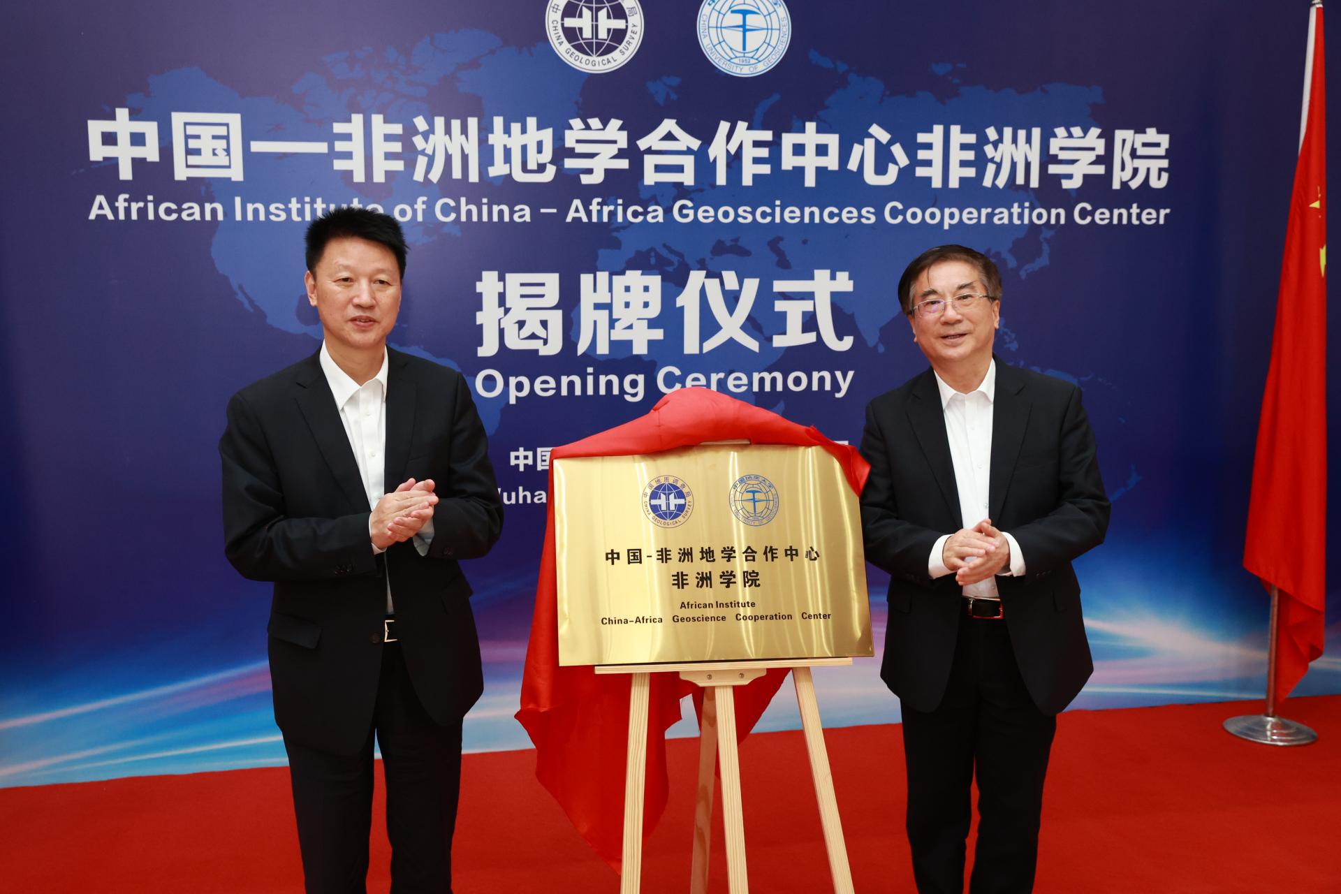 李金发、王焰新共同为中国—非洲地学合作中心非洲学院揭牌。