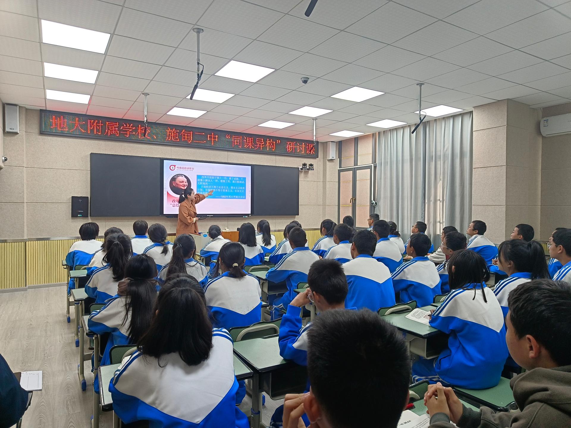 此次交流活动主要以“同课异构”公开课教研为主题,由地大附属学校和施甸二中各选数门同学科教师,分别在不同班级教授相同教学内容,课后教研组围绕授课教师教学设计、方法、过程、效果等问题开展探究研讨,为校际间的教师交流研讨和互动建立了良好的平台。公开课充分运用现代网络信息技术促进优质教育资源共享,施甸县及武汉相关学校教师在线直播观看。