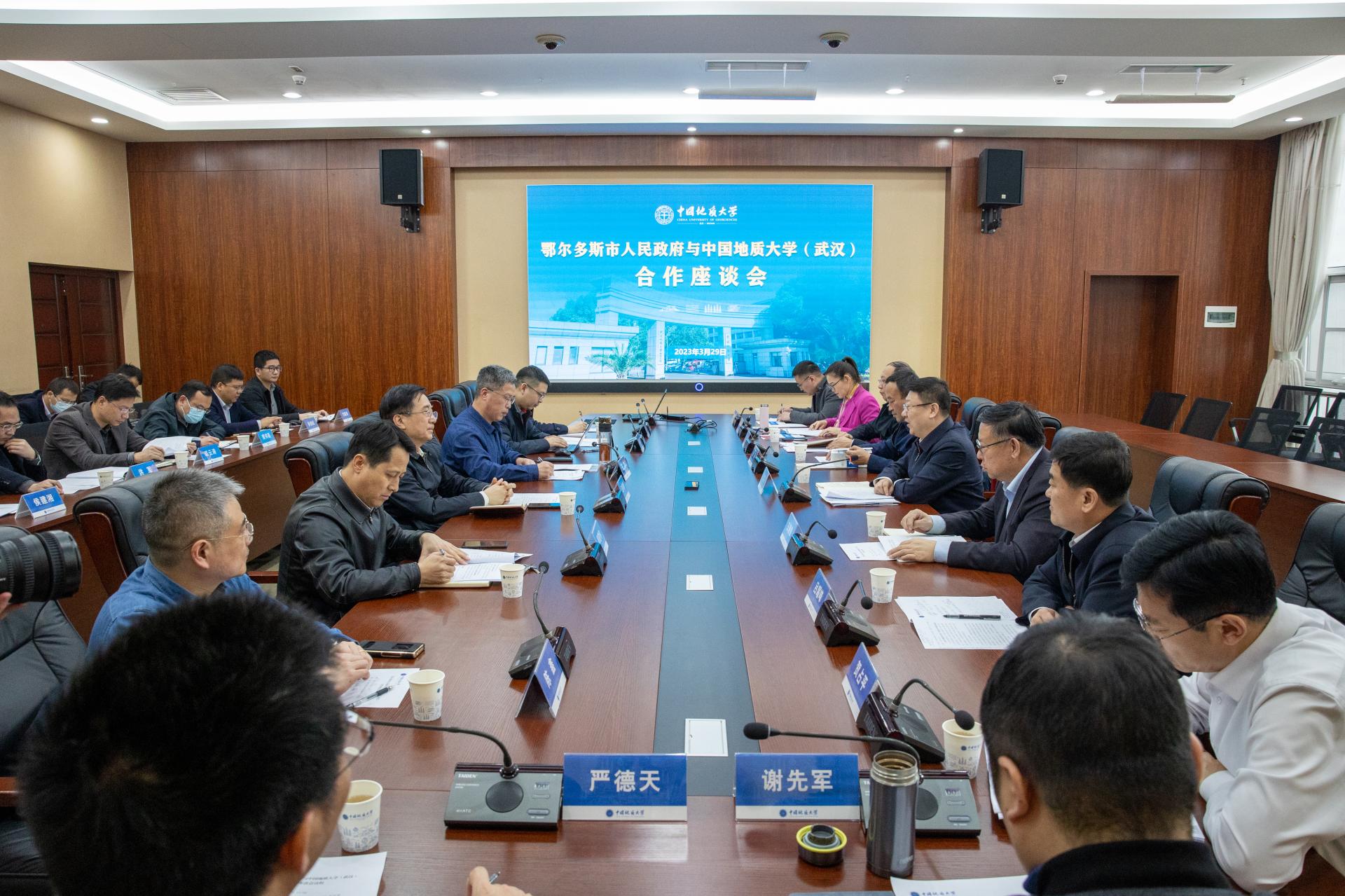 地大新闻网讯(记者 高雅) 3月29日,欧博与内蒙古鄂尔多斯市人民政府就进一步加强市校合作开展座谈。座谈会在南望山校区教学综合楼A701会议室举行。鄂尔多斯市人民政府副市长孔繁飞、鄂尔多斯市人民政府副秘书长刘郑,欧博校长王焰新院士、副校长王华参加合作座谈。王华主持会议。