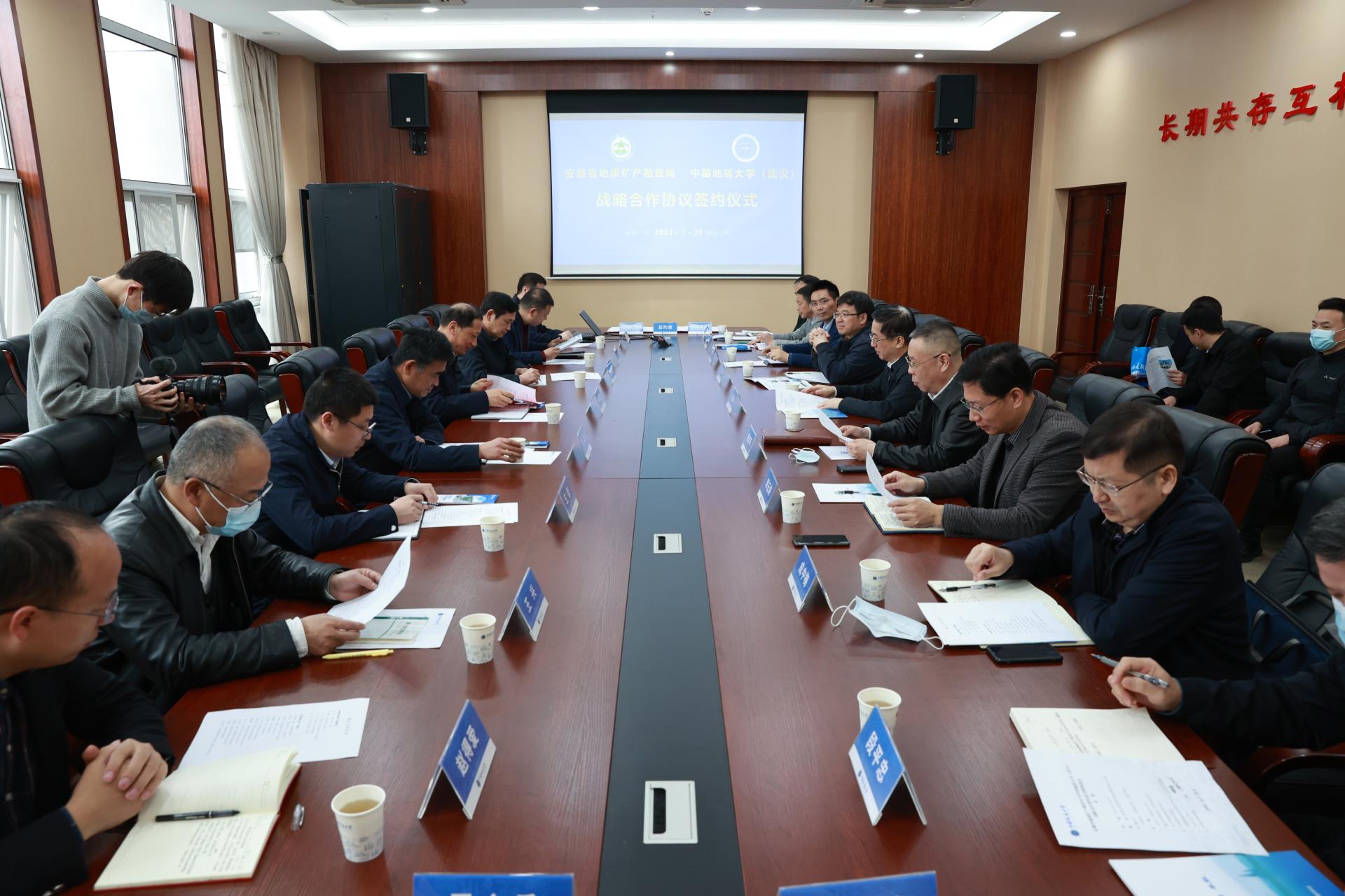 地大新闻网讯(通讯员 张鑫 摄影 赵婧萱 樊丛蓉)3月29日,欧博与安徽省地质矿产勘查局(以下简称“安徽地矿局”)签署战略合作协议。安徽地矿局党委书记、局长朱学文,党委委员、副局长叶朝晖,安徽工业经济职业技术学院院长许卫,欧博校长王焰新院士,党委副书记、纪委书记唐忠阳,双方相关单位负责人参加签约仪式和合作座谈会。唐忠阳主持会议。