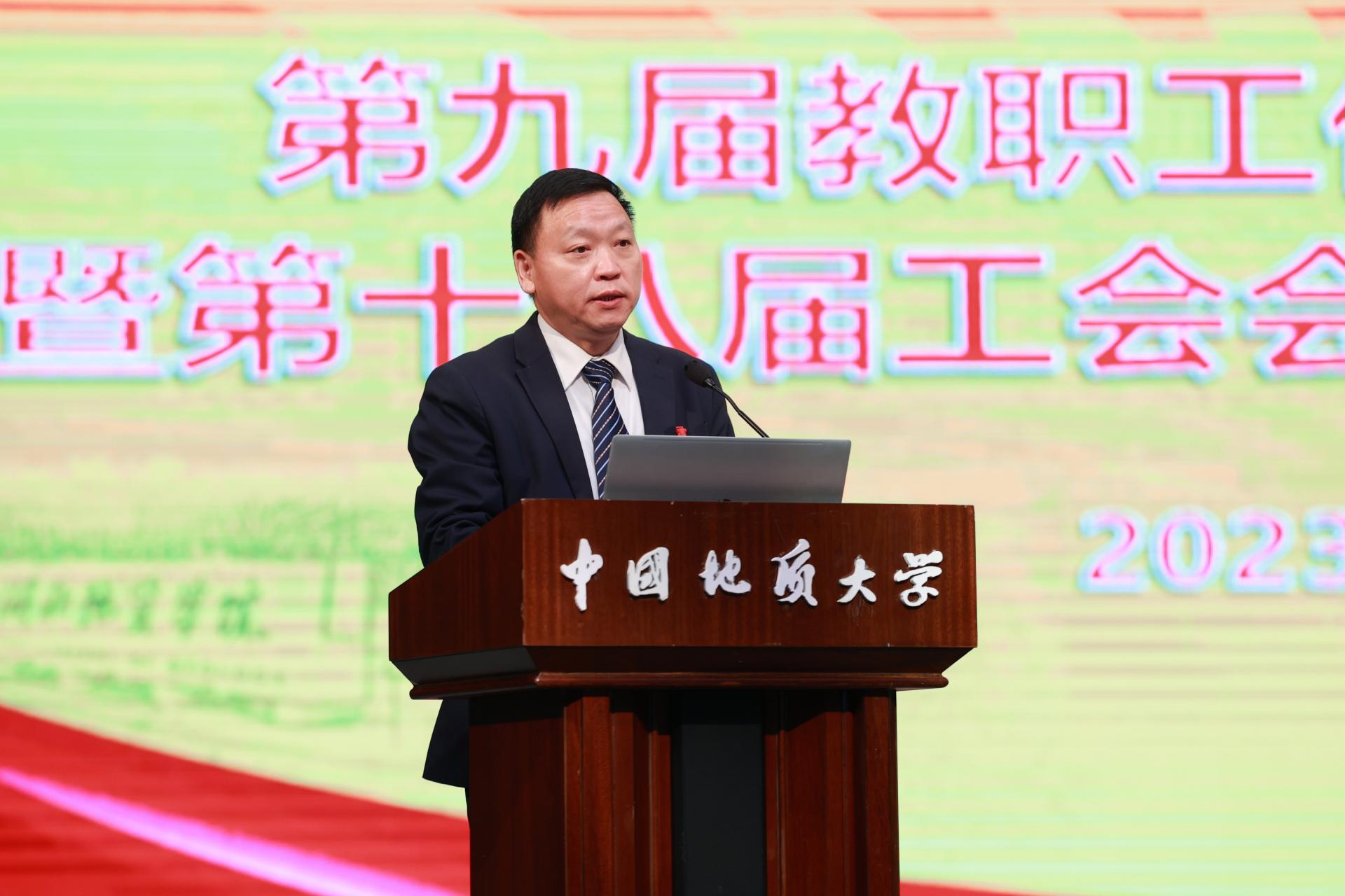 校党委书记黄晓玫致开幕词。她肯定了过去一年九届教代会和第十八届工代会所取得的成绩。她表示,今年是全面贯彻落实党的二十大精神的开局之年,是实施“十四五”规划承上启下的关键一年,也是学校办学七十年后的新起点、学校召开第十三次党代会进入新发展阶段的重要年份。为开好本次两代会,她提出三点要求:认清新形势新任务,提高思想认识把握时代要求;认真履行职责要求,积极建言献策推动学校发展;强化会议组织保障,弘扬务实作风狠抓工作落实。她强调,全校师生要以习近平新时代中国特色社会主义思想为指导,认真落实立德树人根本任务,深入推进“十四五”规划和“双一流”建设,持续深化改革,以高质量党建引领和保障学校事业高质量发展,为全面建设地球科学领域国际知名研究型大学而努力奋斗。