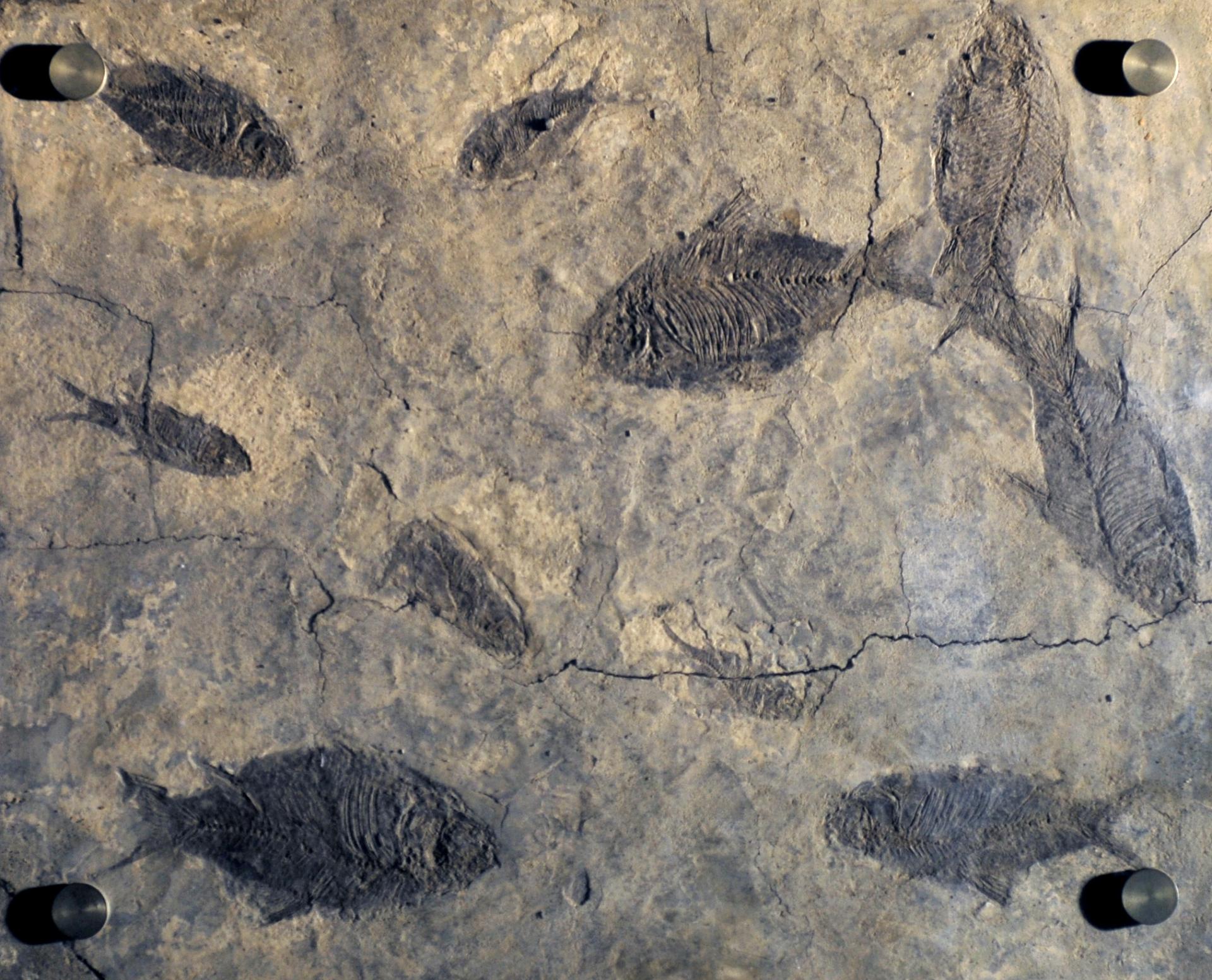 逸夫博物馆珍藏的湖北江汉鱼化石采自湖北松滋,丰度极高且保存完美,虽历经五千多万年,但鱼头、鱼尾、鱼眼、鱼翅、鱼鳞依然清晰,栩栩如生。在不到0.15平方米的层面上可见十条鱼化石,它们为研究古近纪早期鱼类的分异、埋藏环境和多样性以及亚口鱼的生物地理分区提供了宝贵资料。