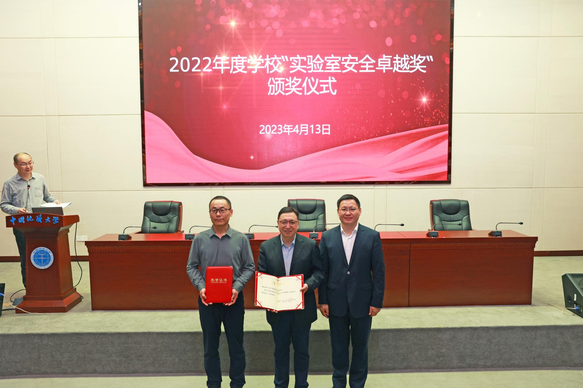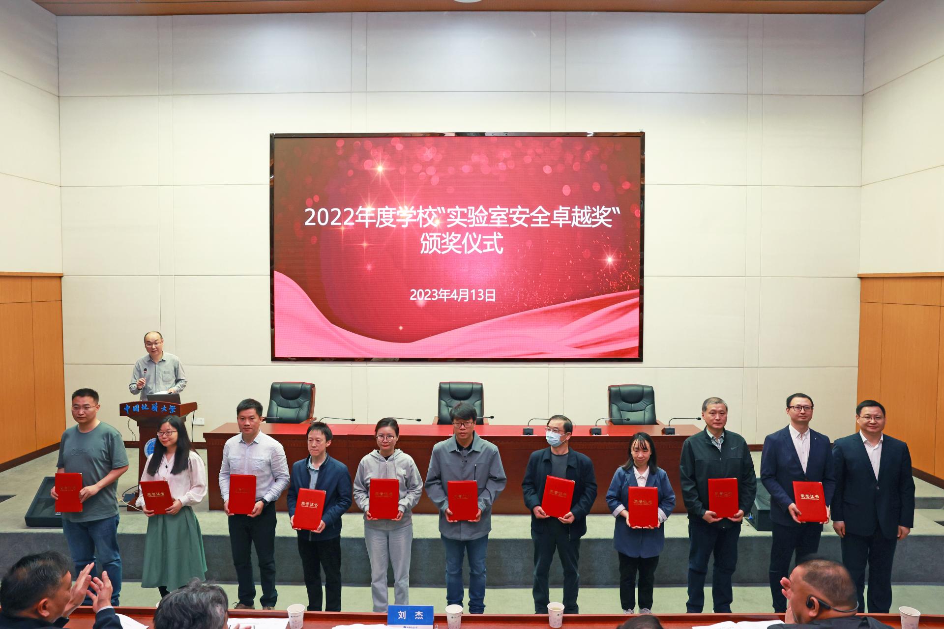 刘杰为获得2022年度学校“实验室安全卓越奖”的先进单位和先进个人颁发获奖证书,并希望获奖单位和个人再接再厉,继续为学校实验室安全工作做出更大的贡献。