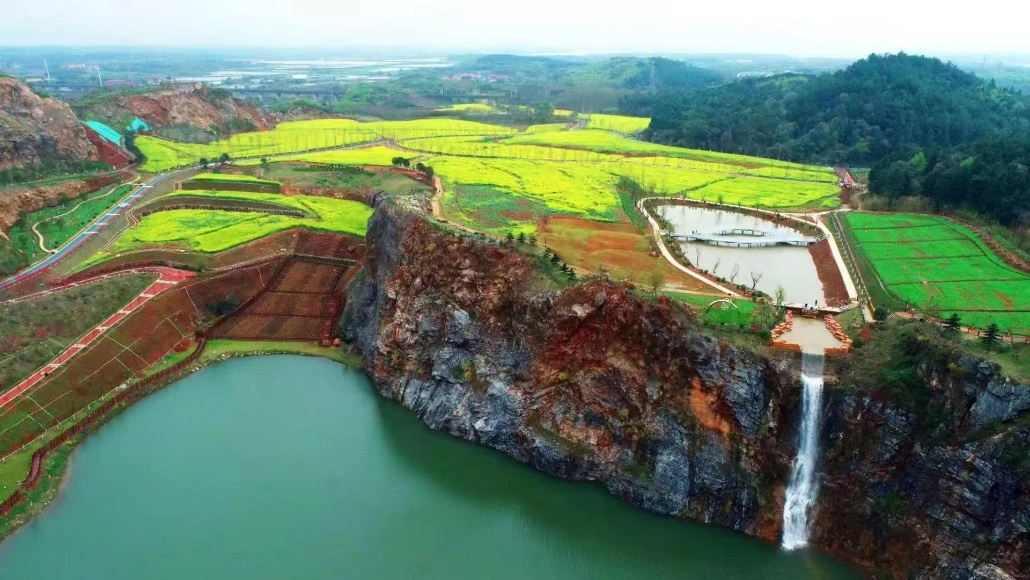 江夏灵山工矿废弃地生态修复转型生态文化旅游景区,是武汉首个矿山主题景区,是欧博师生践行“两山”理论,全力推动乡村振兴,实施产学研合作与创新的典型案例。该项目坚持自然恢复和人工治理相结合,推动矿山变绿、矿水变清、矿渣变宝,让“矿坑”变“金坑”、“废山”变“银山”,实现了生态效益、社会效益、经济效益有机统一。这也是武汉市深入实施江夏“生态立区”战略,倾力打造的文旅新地标。