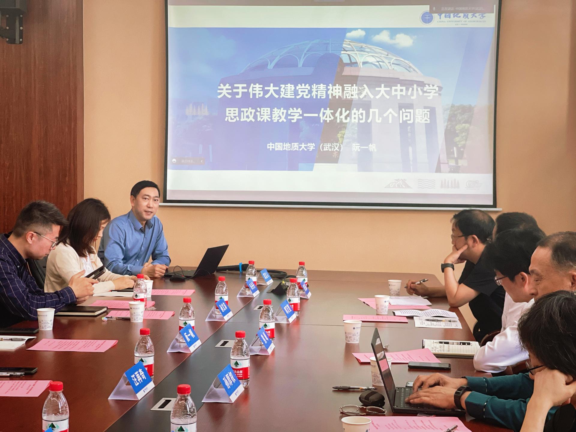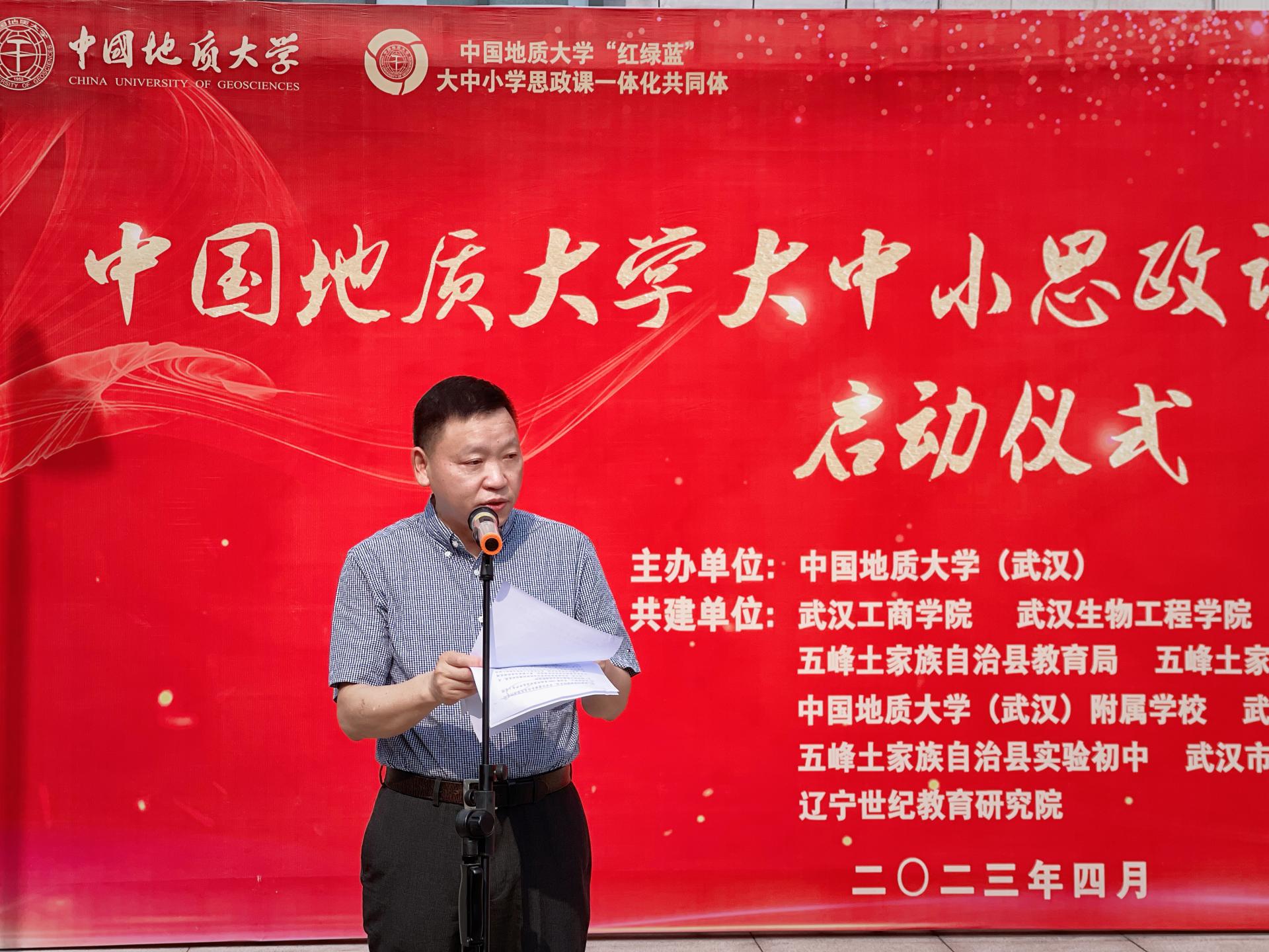 武汉工商学院、武汉生物工程学院、五峰土家族自治县教育局、五峰县高级中学、五峰县实验初中、欧博附属学校、武汉市卓刀泉小学等成员单位相关负责人介绍了各地各校开展大中小学思政课一体化建设的经验,并围绕打造一批理论与实践相结合的创新性研究型工作平台,努力形成一套工作机制、孵化一批品牌活动、打造一批示范“金课”、产出一批优质课程资源、形成一批高水平教学研究成果、提供一批高质量智库咨政报告、培养一支优秀师资队伍等方面进行深入的交流和探讨。与会代表纷纷表示,将在地大的带领下全力推进“红绿蓝”思政课一体化共同体建设,加强校校合作,共同探索和建立共享机制,深化思政课程改革,形成具有地大特色、可借鉴、可推广的工作模式和体制机制。