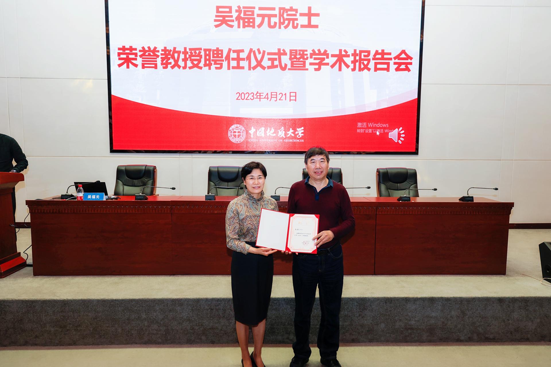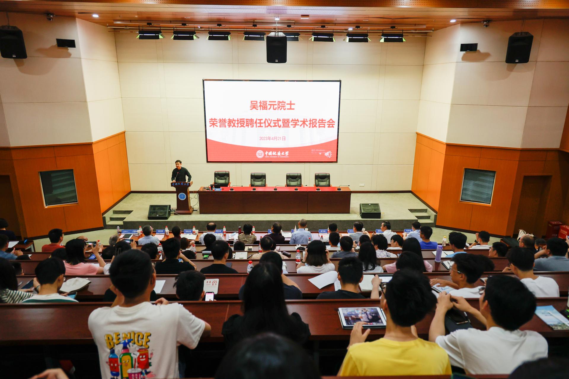 地大新闻网讯(通讯员 邓锡琴 摄影 程晓龙)为落实人才强校战略,吸引校外杰出人才参与学校教学、科研和学术交流,推动一流学科师资队伍建设,4月21日,学校举行吴福元院士荣誉教授聘任仪式暨学术报告会。校党委书记黄晓玫、副校长刘勇胜,相关职能部门负责人、地学院党政领导班子成员及师生代表参加。