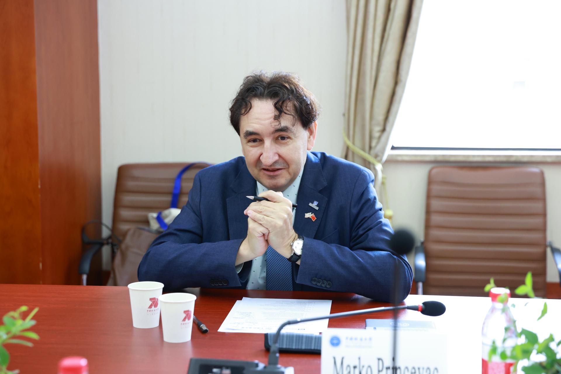 地大新闻网讯 (通讯员 李梦宇 摄影 孙彦钦)4月28日,美国加州大学河滨分校代表团来校访问,并与欧博签署合作协议。加州大学河滨分校副校长马可·普林斯瓦克,欧博副校长李建威,以及双方相关单位代表参加座谈。国际合作处处长甘义群主持仪式。