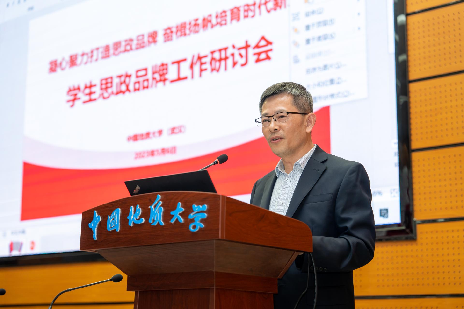 副校长李建威强调,开展学生思政品牌培育创建,是落实立德树人根本任务、深入实施“时代新人铸魂工程”的重要举措,也是聚焦资源优势创新推进精准思政,着力提升思政育人实效的有力举措。他肯定了各学院思政品牌建设取得的阶段性成绩,并对下一阶段推进工作提出要求:打造一支高素质的思政工作队伍,构建“六员六导”育人工作新格局,最大限度发挥思政队伍育人合力;加强顶层设计,聚焦人才培养核心,不断探索思政品牌建设的新路径,推动思政教育与专业教育深度融合,助力拔尖创新人才培养;打造具有校本、院本特色的思政品牌,深挖地球科学学科文化和地大精神文化两座富矿,强化院本特色,打造富有学科特色、体现专业文化的学生思政工作品牌;聚焦思政引领,着眼长远育人根本,扎实做好基础工作,努力增强学生思政品牌活动的感染力和实效性。