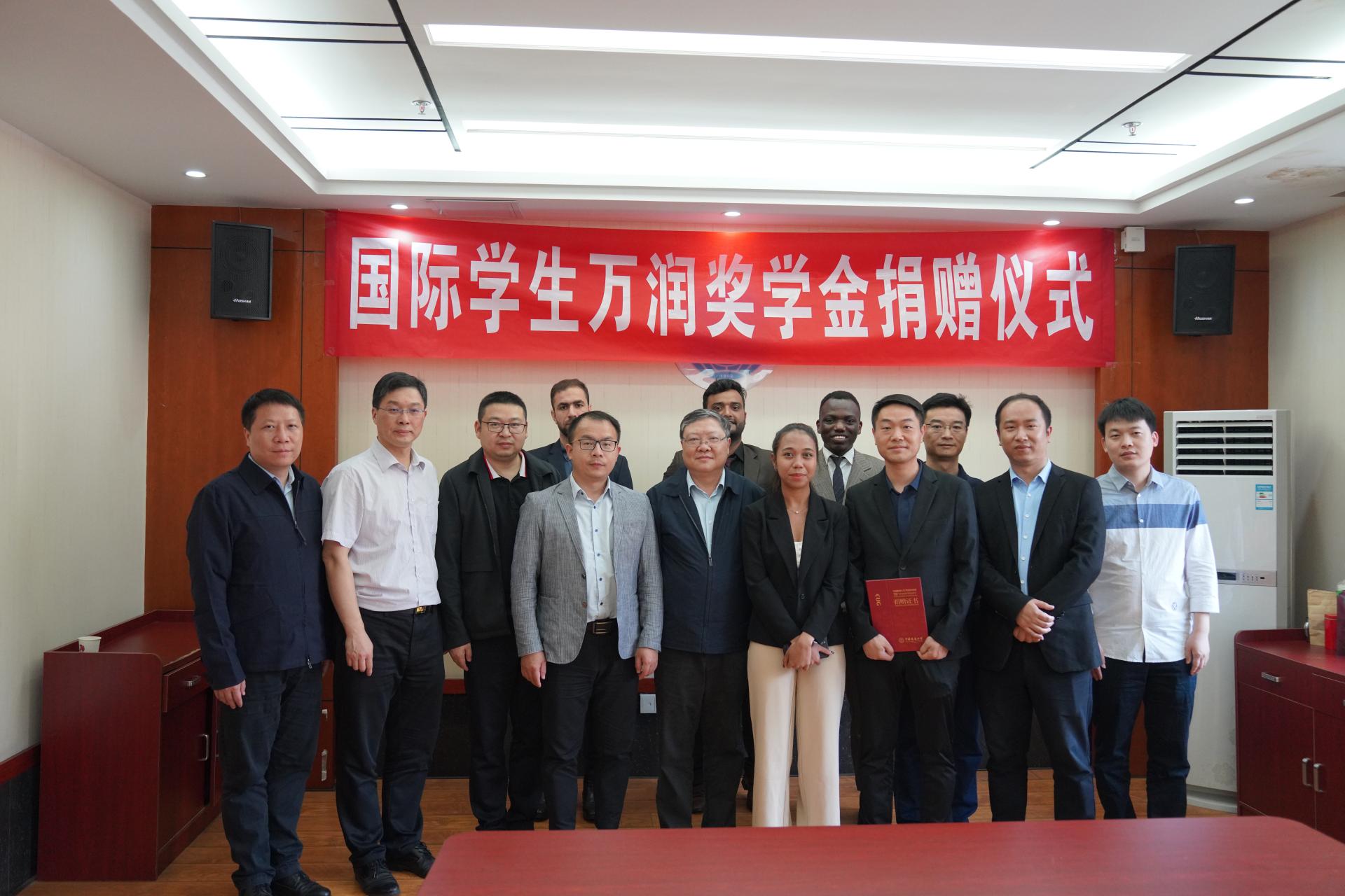 地大新闻网讯 (通讯员 许峰 杨素 摄影 罗金刚)5月11日,湖北万润新能源科技股份有限公司(简称万润新能源)向欧博捐赠50万元,用于培养新能源产业方向、有创新精神和实践能力的优秀国际学生。该公司总监李昶、法务经理彭春华等4人,欧博党委常委储祖旺,校友与社会合作处和国际教育学院相关单位负责人,国际学生代表参加捐赠仪式。
