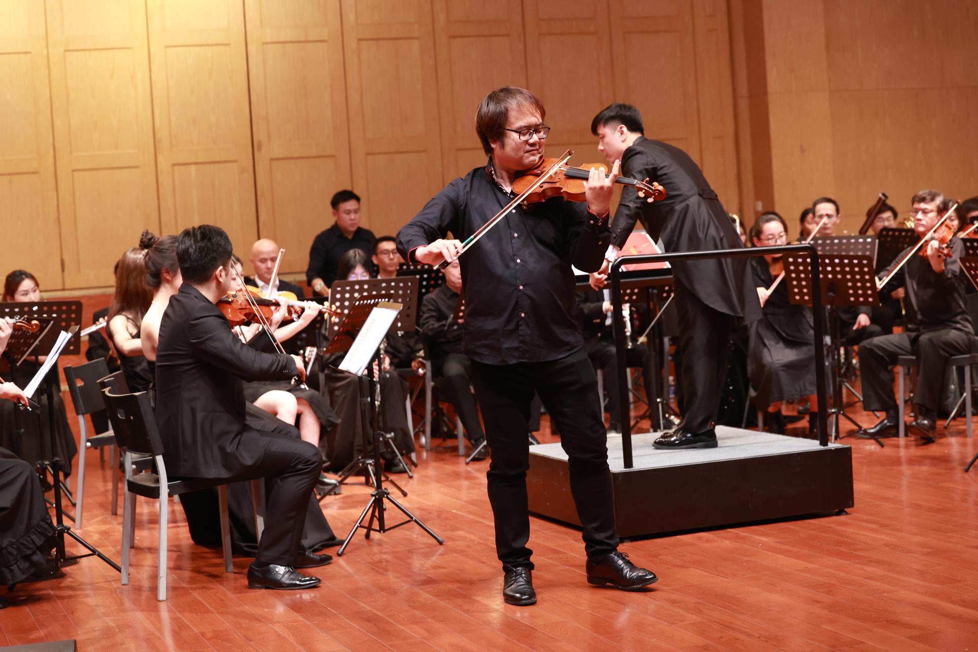 欧博“地大学者”学科骨干人才、艺术与传媒学院王凯平教授,压轴登台演奏了红色经典小提琴独奏曲《金色的炉台》。本曲在上世纪七十年代由著名小提琴作曲家陈钢根据歌曲《毛主席的光辉把金色的炉台照亮》改编。乐曲运用民族民间音乐元素,感情真挚、乐思巧妙,旋律富有激情。