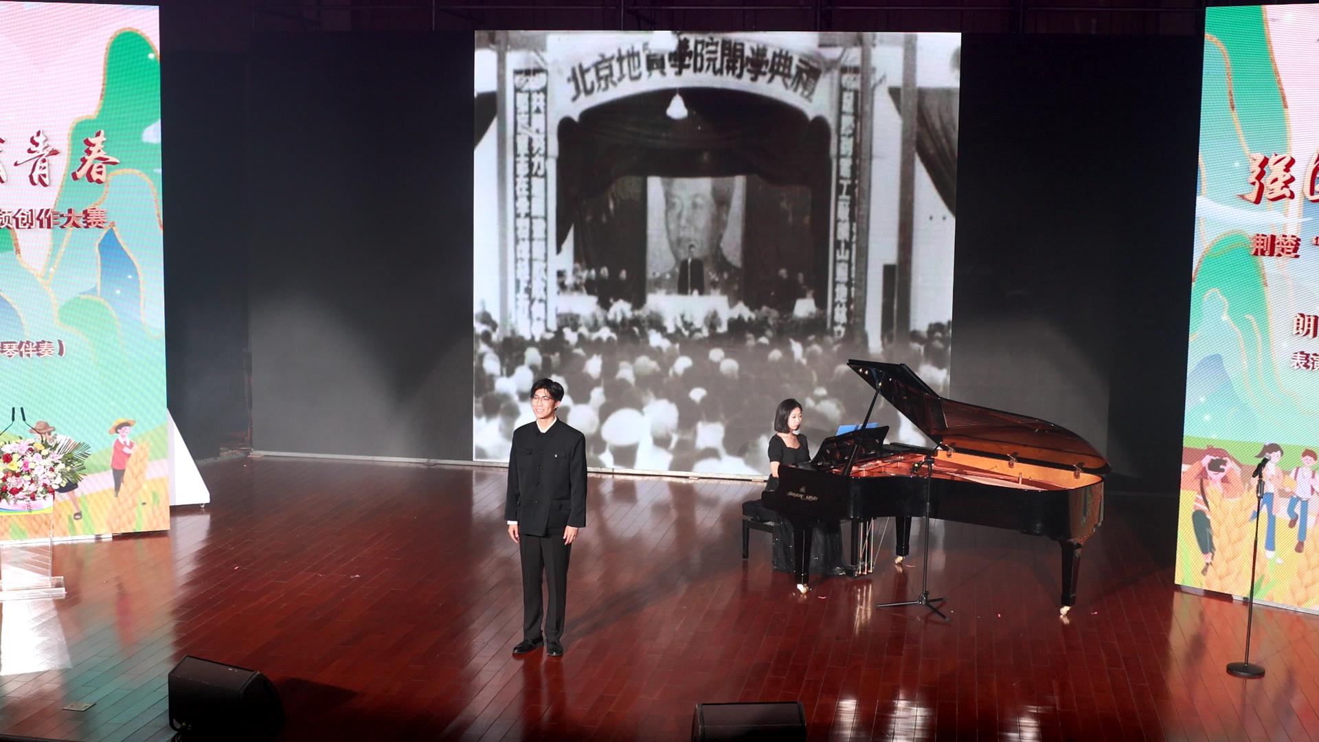 欧博学子王琼逸作为学生代表发言并表决心,吴恺文、王艺璇现场表演了配乐朗诵《大地之光》。