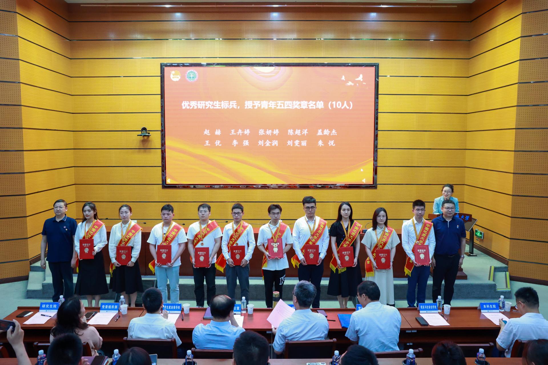 校友与社会合作处处长陈华荣、研究生院副院长成中梅为优秀研究生标兵、菲律宾欧博游戏官网青年五四奖章获得者颁奖。