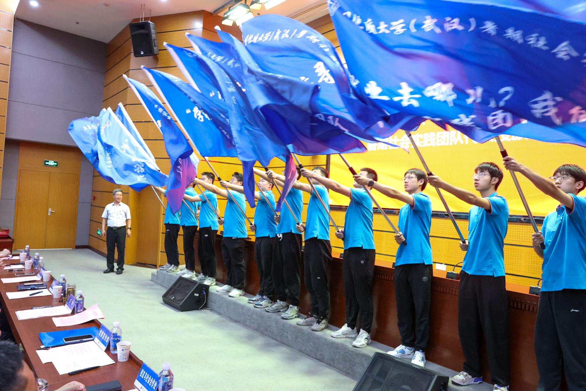 王华为2023年暑期“三下乡”社会实践团队代表授旗,并宣布社会实践团出征。