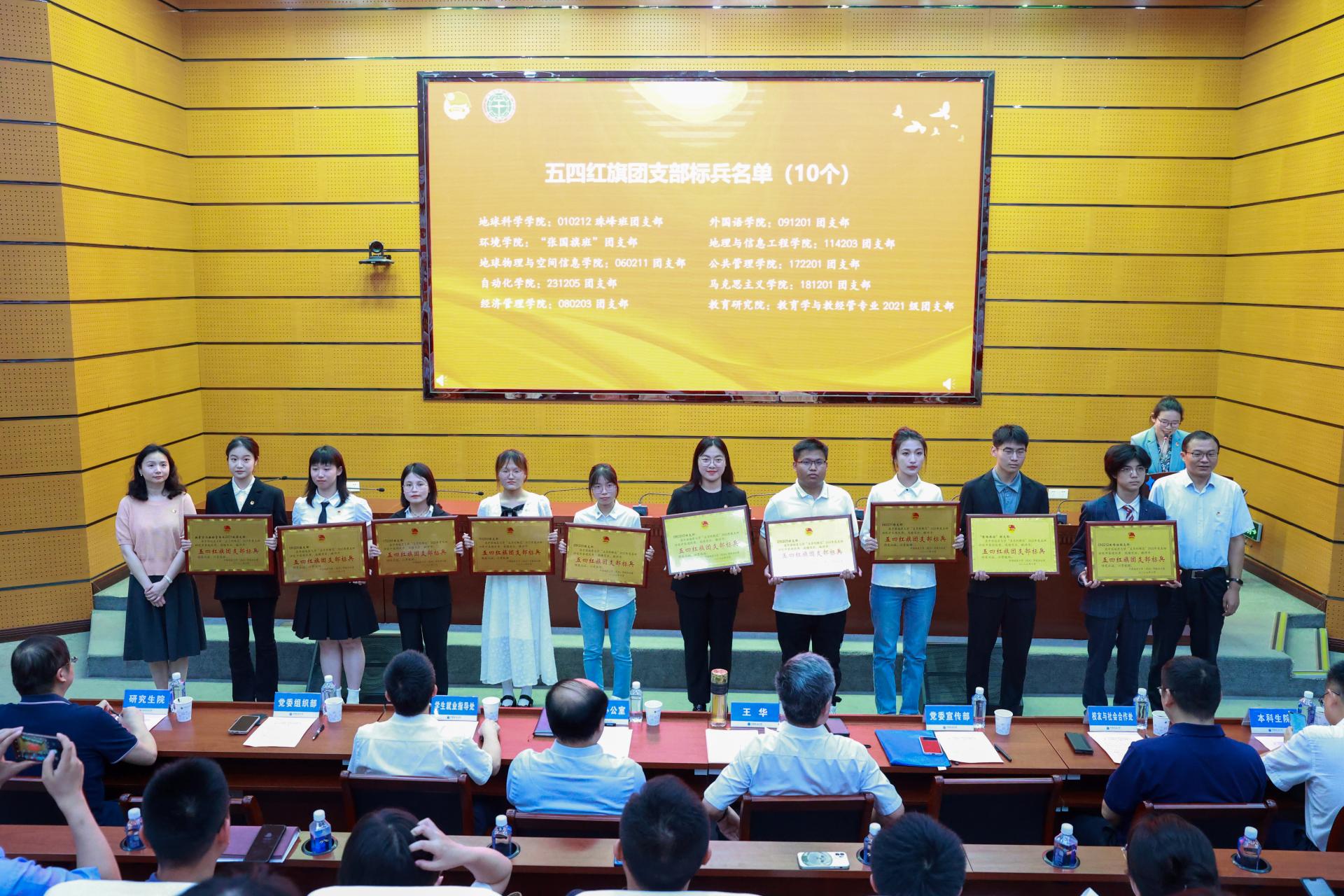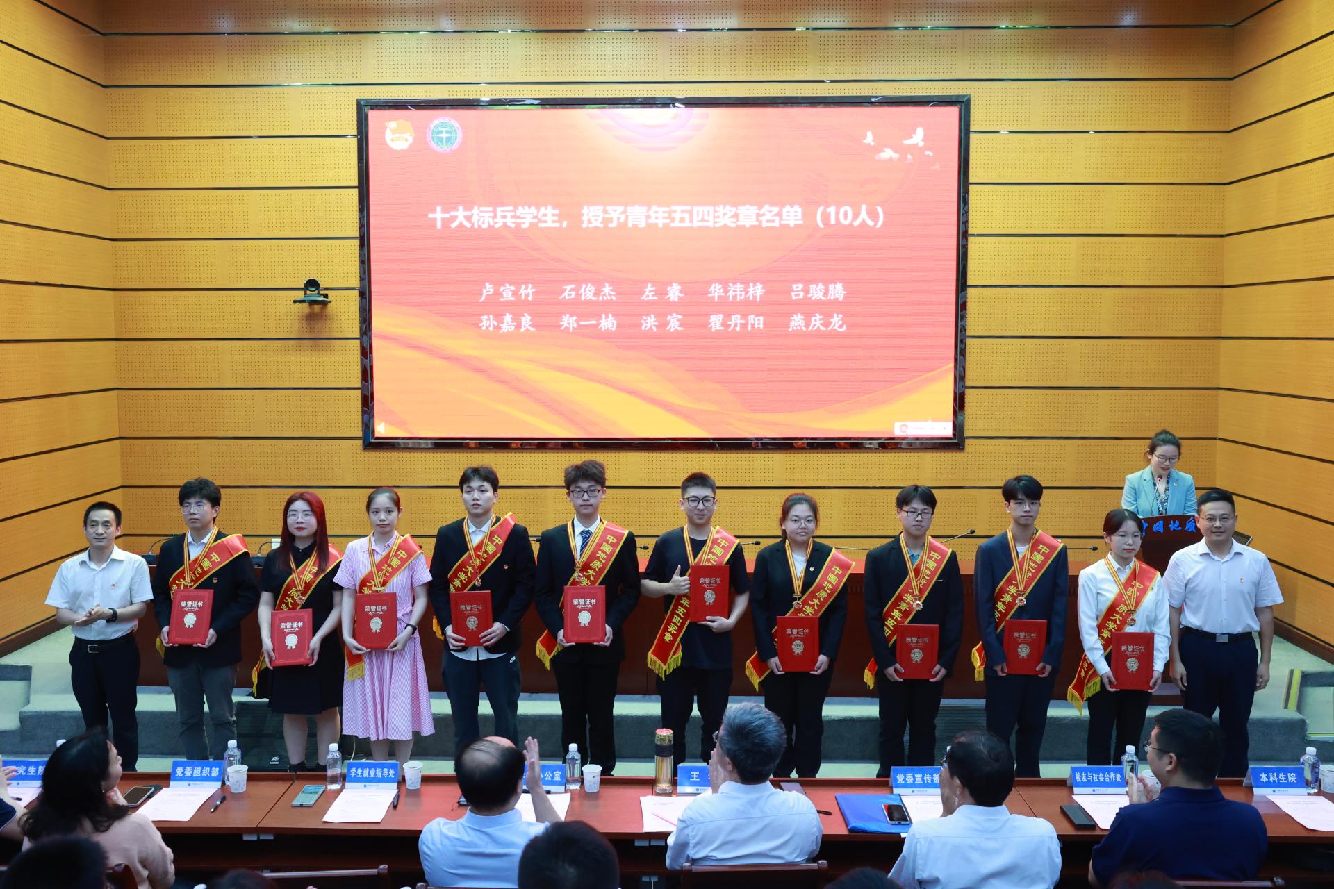 学生就业指导处处长吴堂高、本科生院副院长朱继为十大标兵学生、菲律宾欧博游戏官网青年五四奖章获得者颁奖。