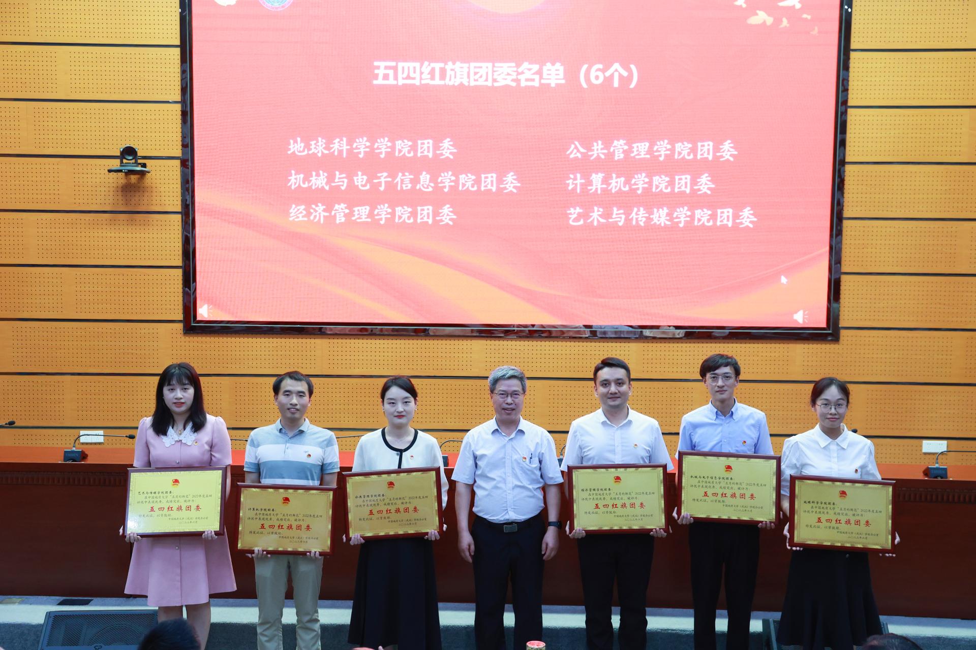 党委宣传部部长侯志军、党委组织部副部长胡肖为五四红旗团支部标兵颁奖。