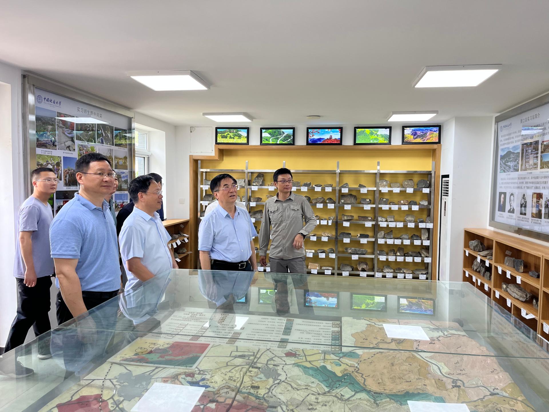 野外路线考察结束后,王焰新一行回到周口店实习站,参观了全新改造的标本陈列室、岩矿实验室,走访了学生宿舍,与开展室内整理工作的师生亲切交流。他关心师生在站实习情况,叮嘱师生要提高安全意识,注意防暑,勉励同学们要努力学到真本事、锤炼真本领。